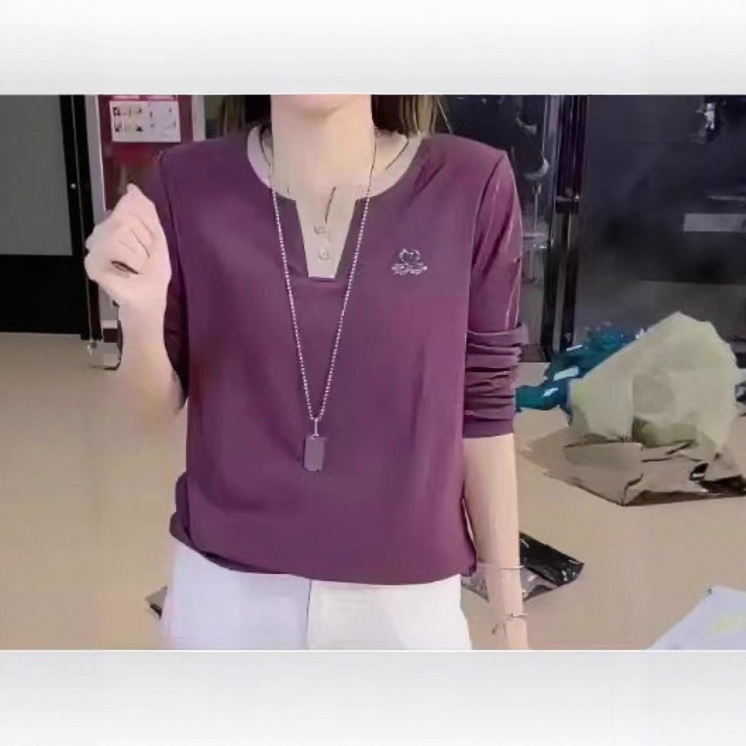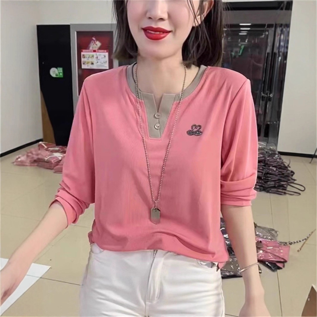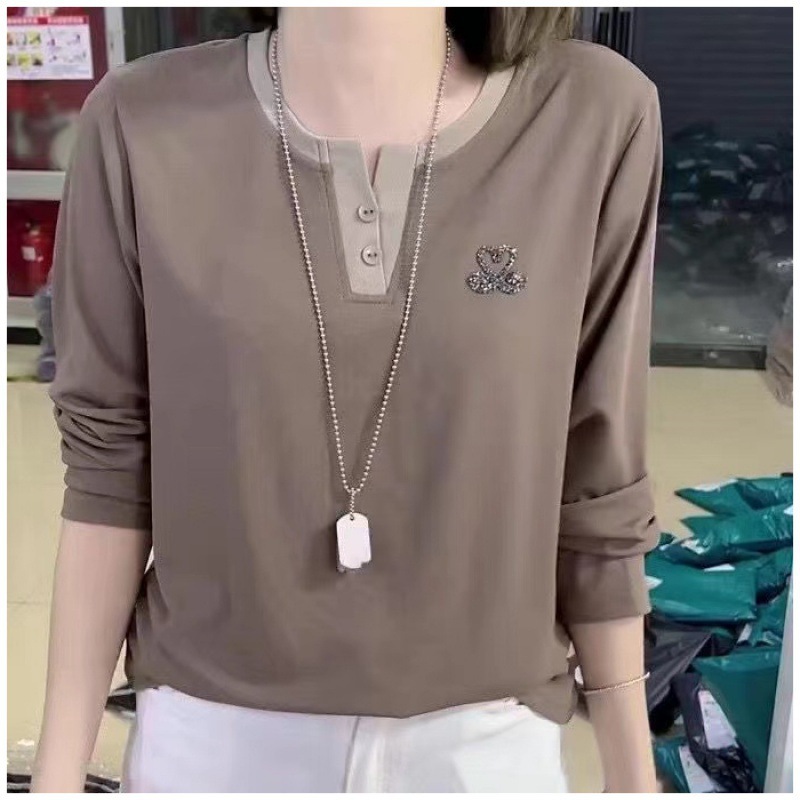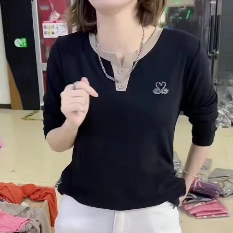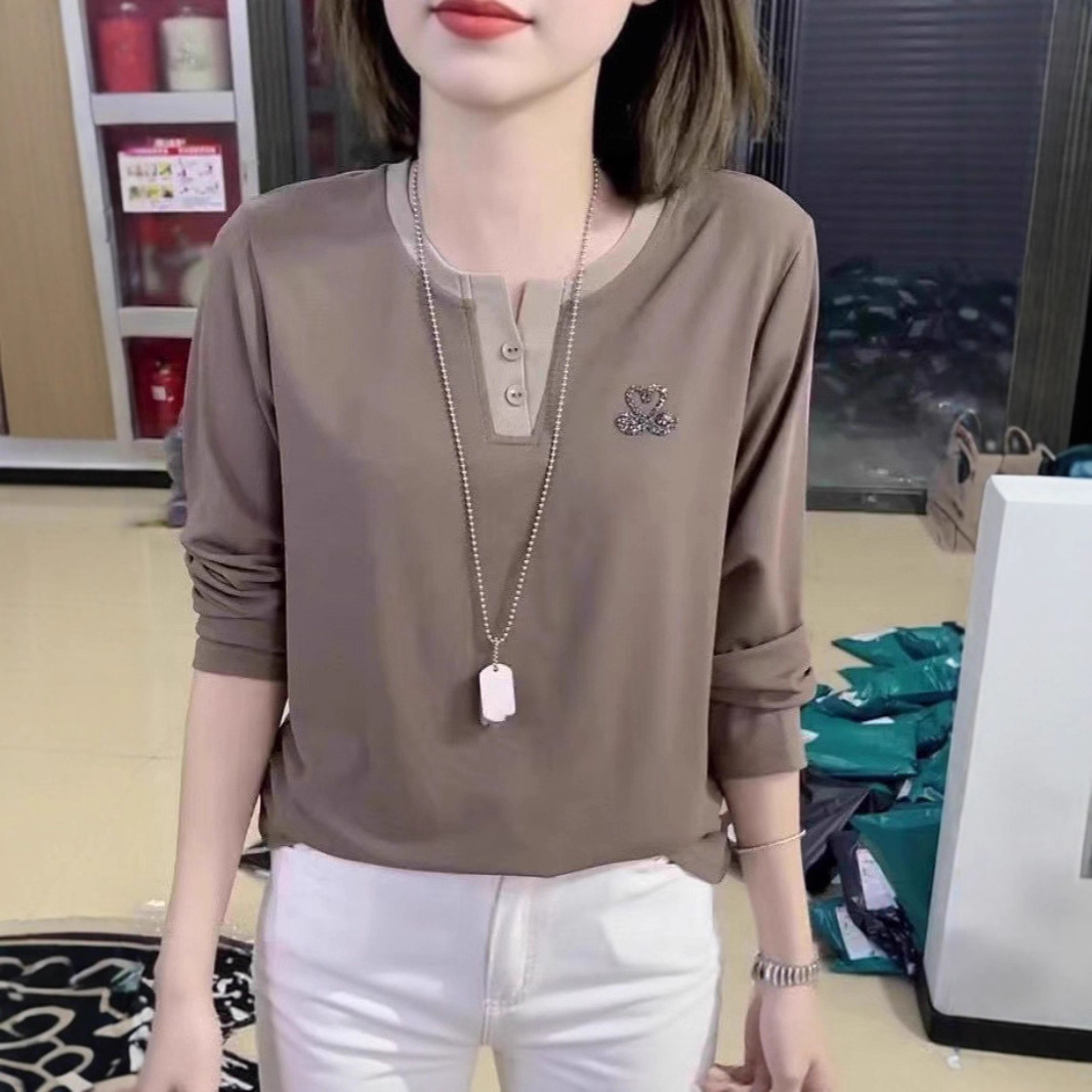 Women's Long-sleeved T-shirt V-neck Bottoming Shirt Hot Rhinestone Casual Top