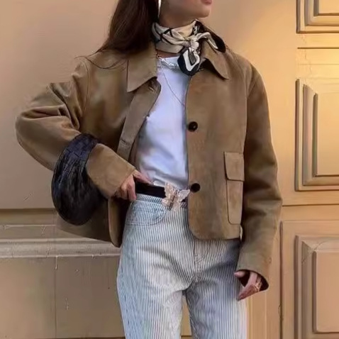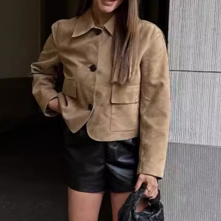 Women's Long-sleeved Turn-down Collar Coat Single-breasted Pocket Jacket