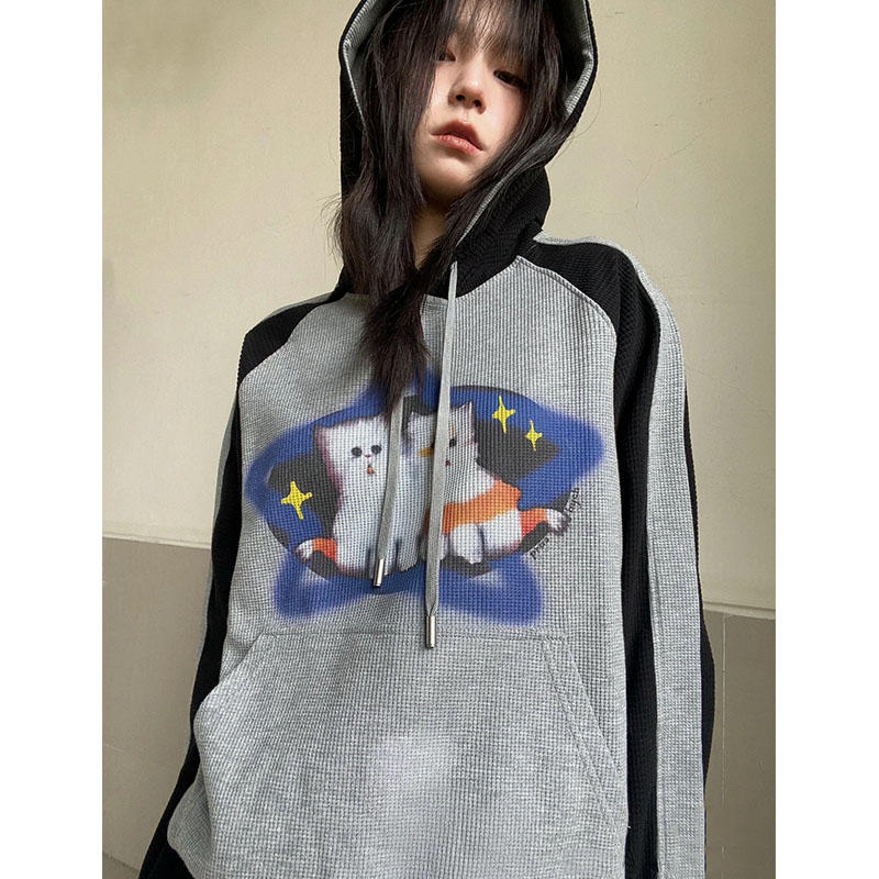 Women's Loose American Retro Starry Cat Sweater