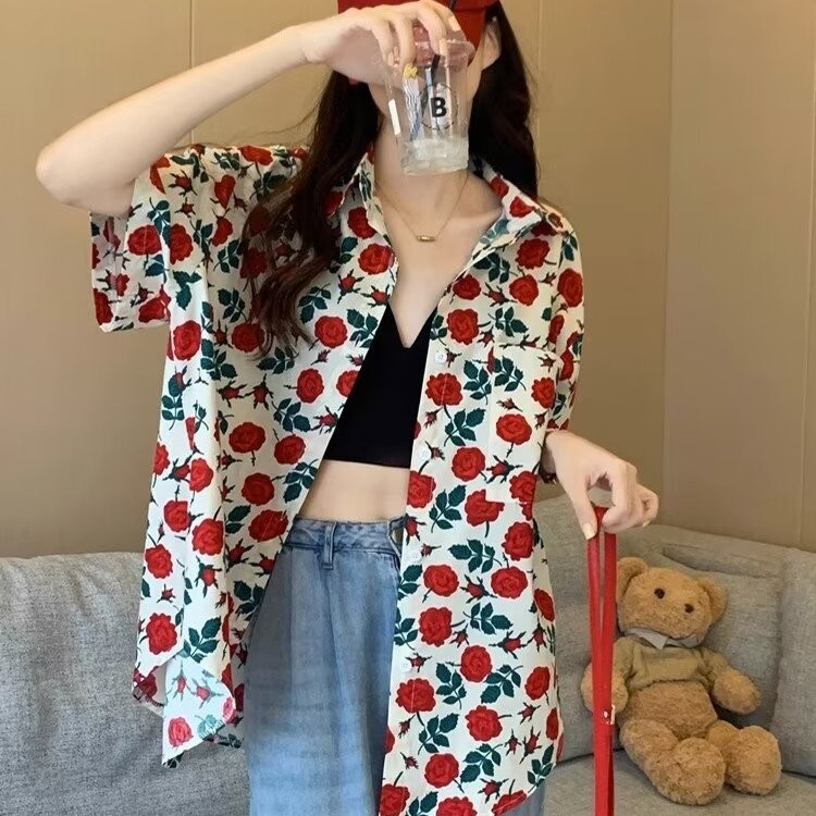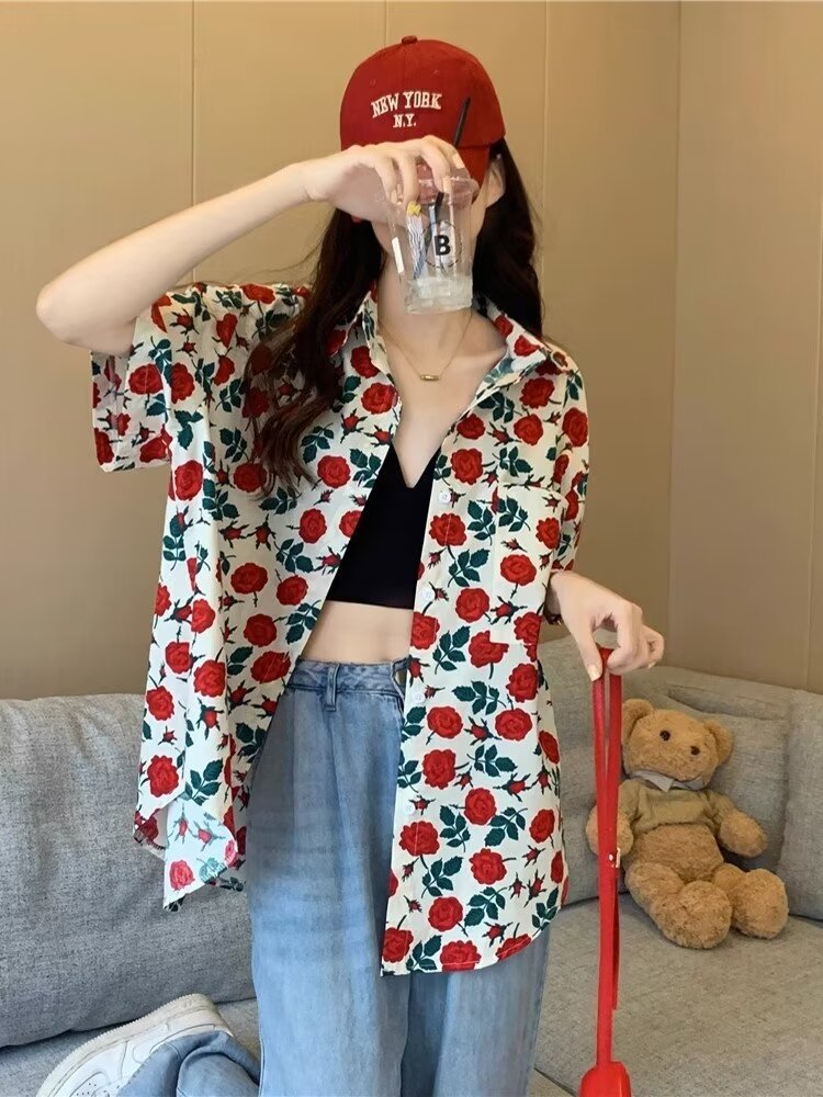 Women's Loose Casual Hawaiian Floral Shirt