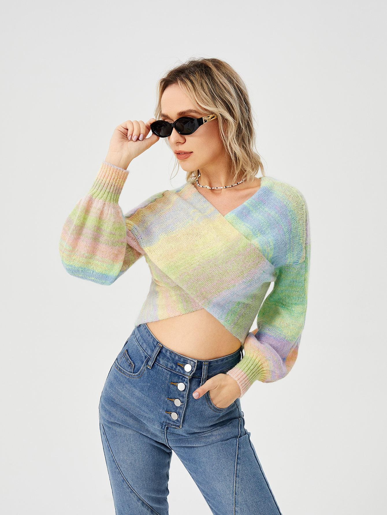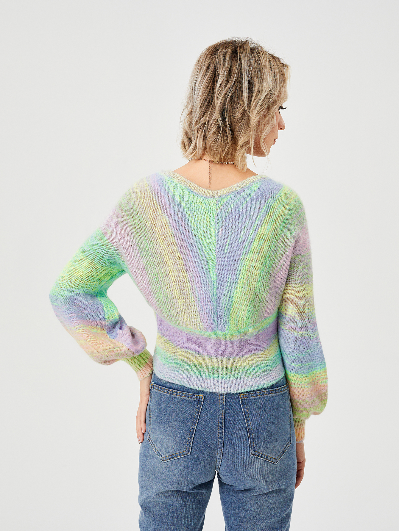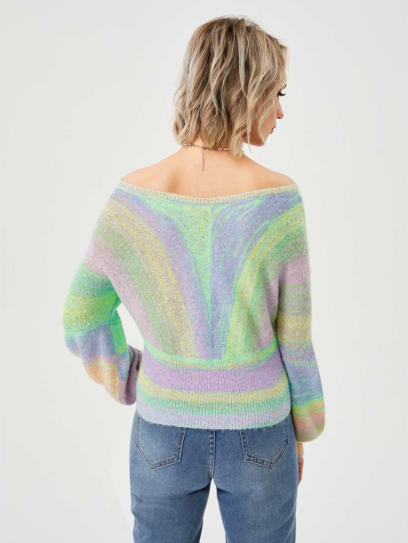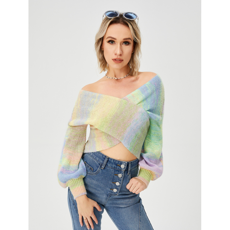 Women's Loose Casual Rainbow Stretch Off Shoulder Sweater