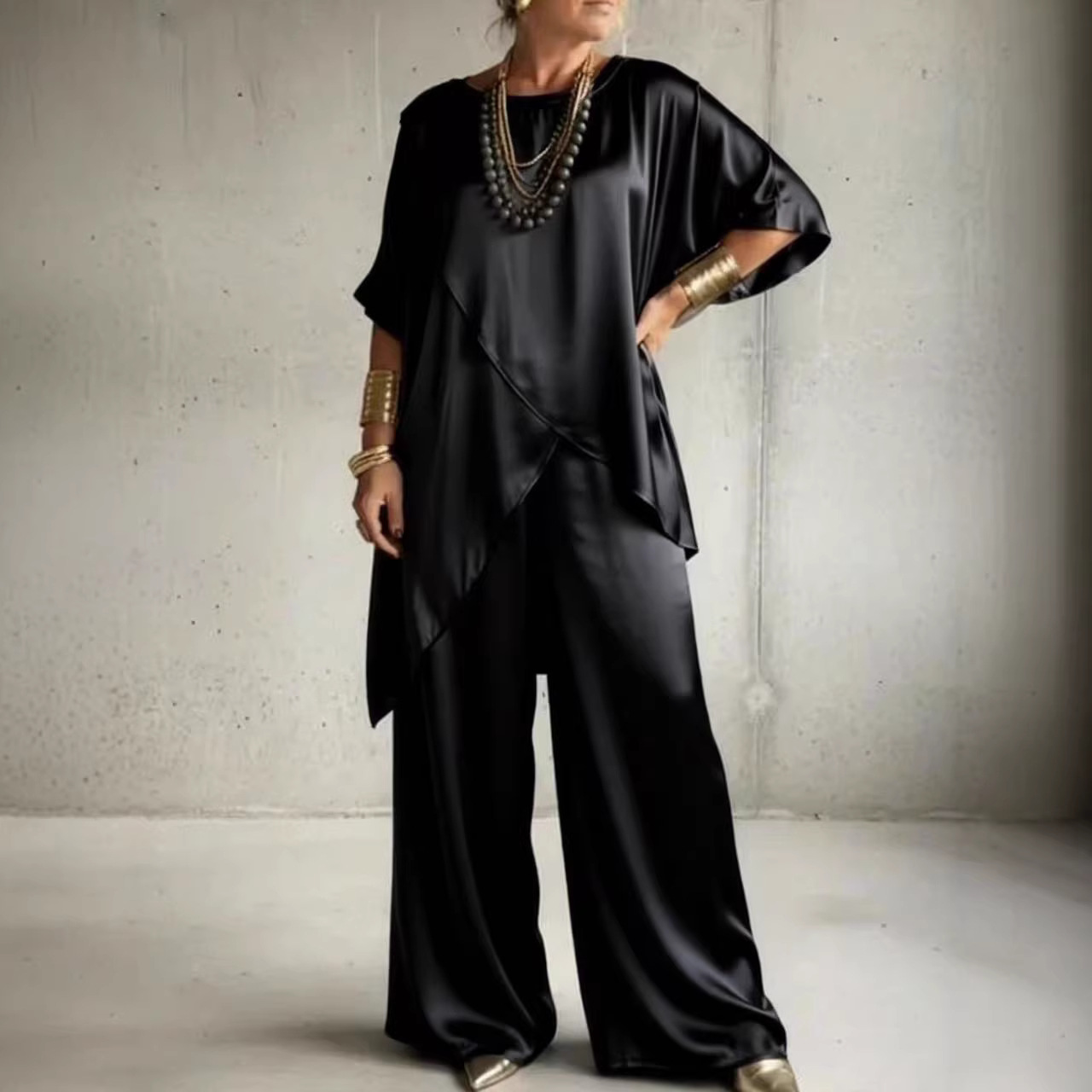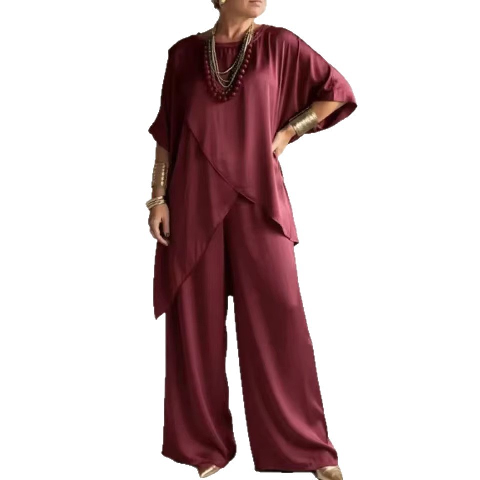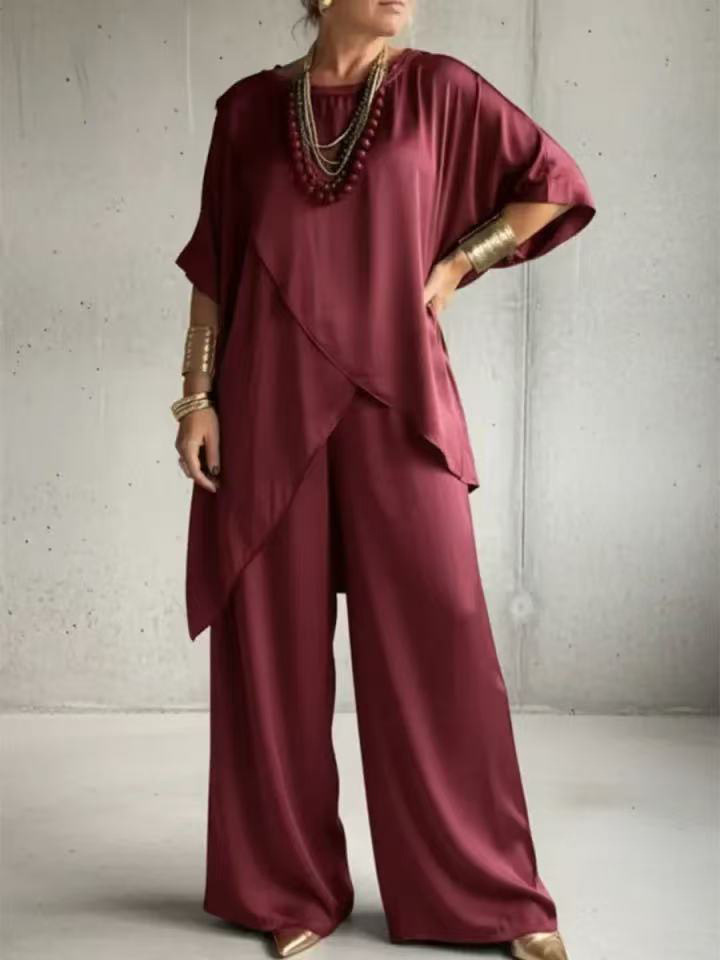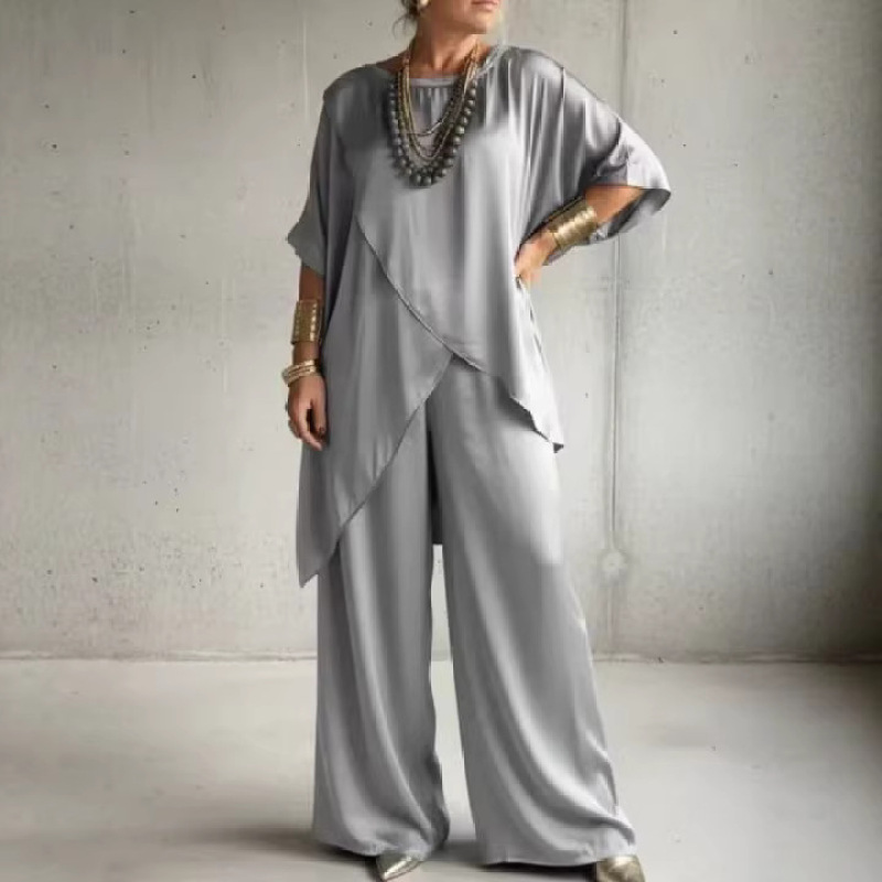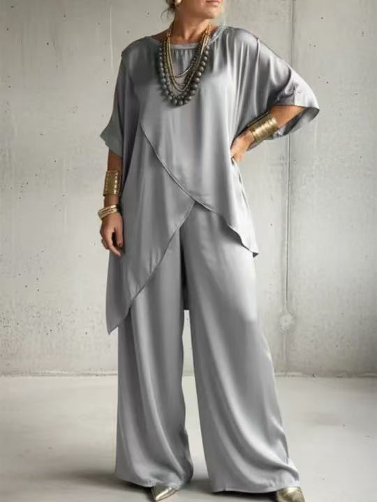 Womens Loose Casual Set With A Crew Neck And Asymmetrical Hem