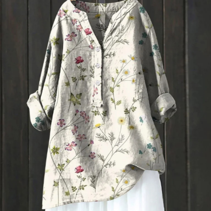 Women's Loose-Fit V-Neck Blouse With Ditsy Floral Vine Print
