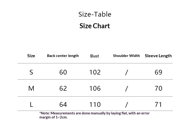 1. Asian sizes are 1 to 2 sizes smaller than European and American people. Choose the larger size if your size between two sizes. Please allow 2-3cm differences due to manual measurement. 2. Please check the size chart carefully before you buy the item, if you don't know how to choose size, please contact our customer service. 3.As you know, the different computers display colors differently, the color of the actual item may vary slightly from the following images.