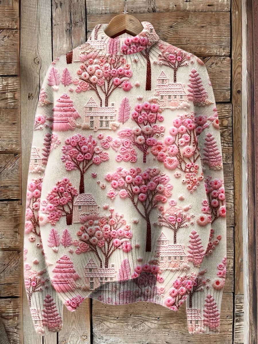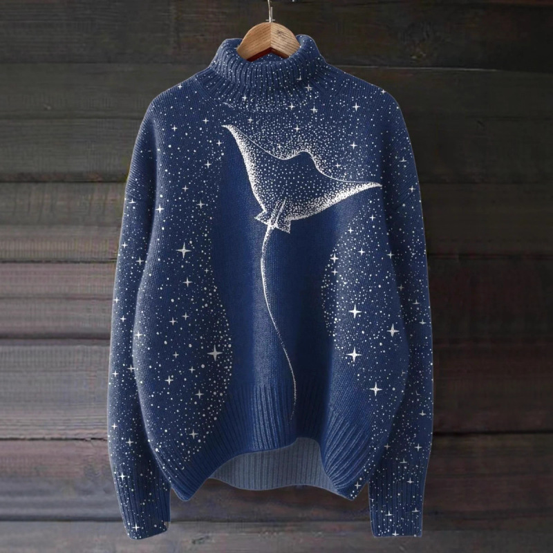 Womens Loose-fitting Semi-high-neck 3D Digital-print Polyester Top For Breathability