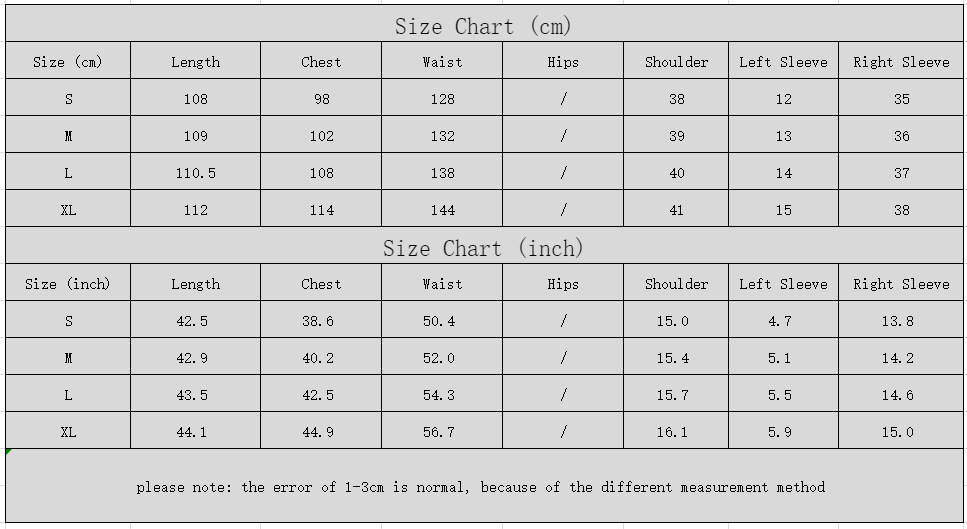 1. Asian sizes are 1 to 2 sizes smaller than European and American people. Choose the larger size if your size between two sizes. Please allow 2-3cm differences due to manual measurement. 2. Please check the size chart carefully before you buy the item, if you don't know how to choose size, please contact our customer service. 3.As you know, the different computers display colors differently, the color of the actual item may vary slightly from the following images.