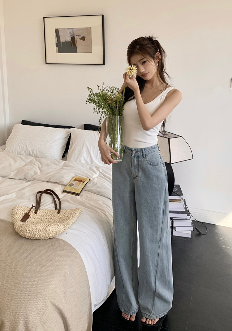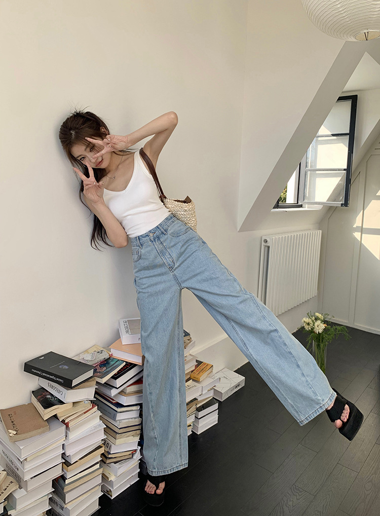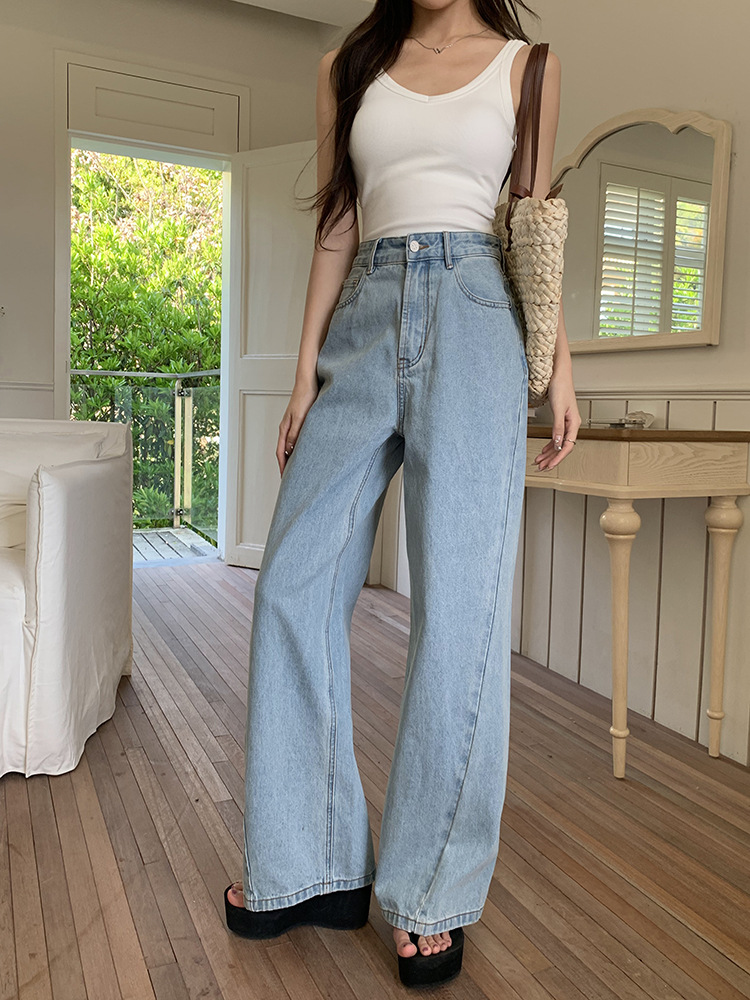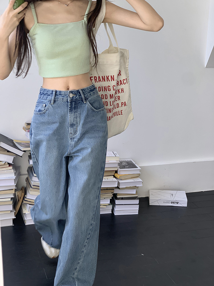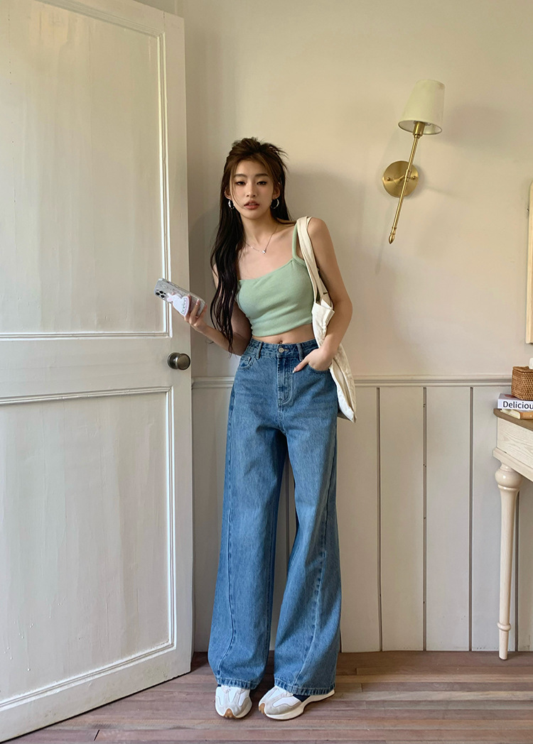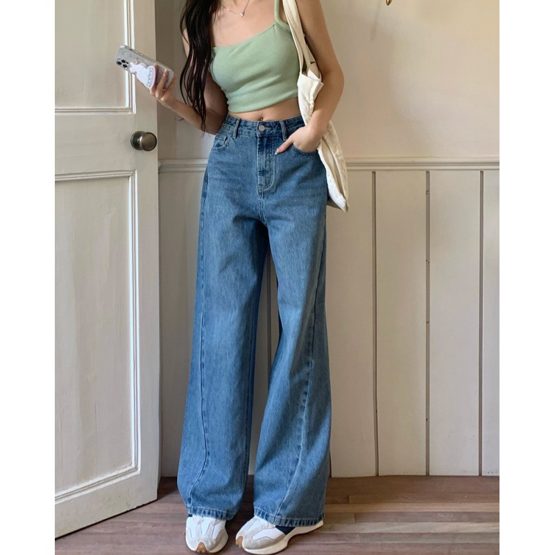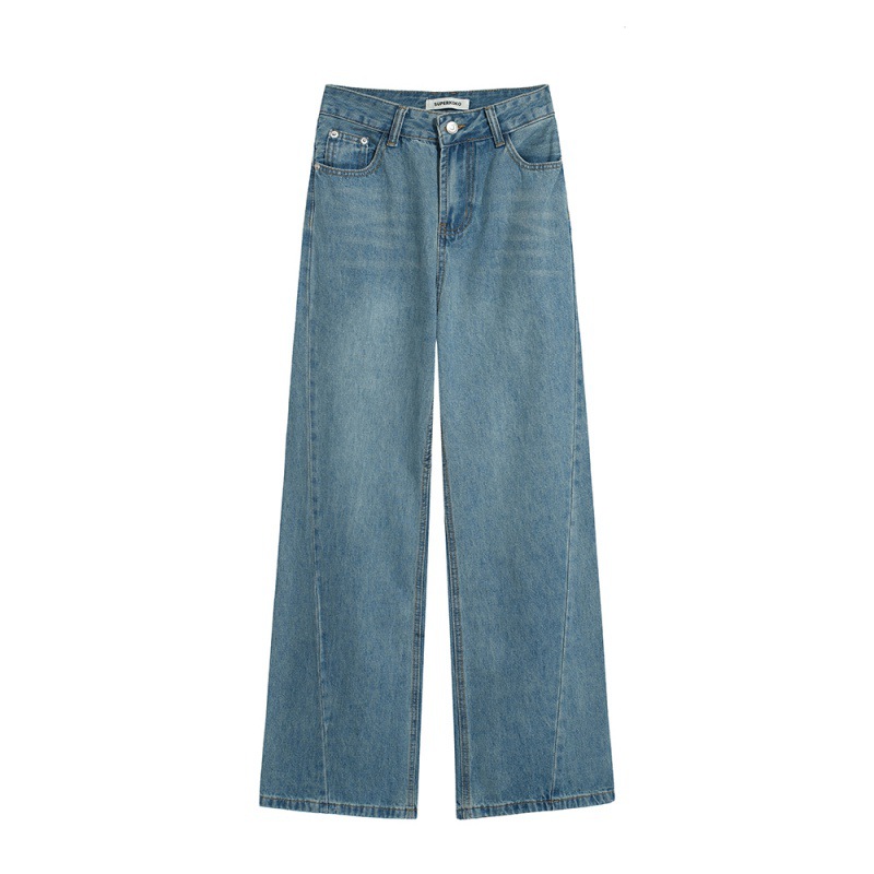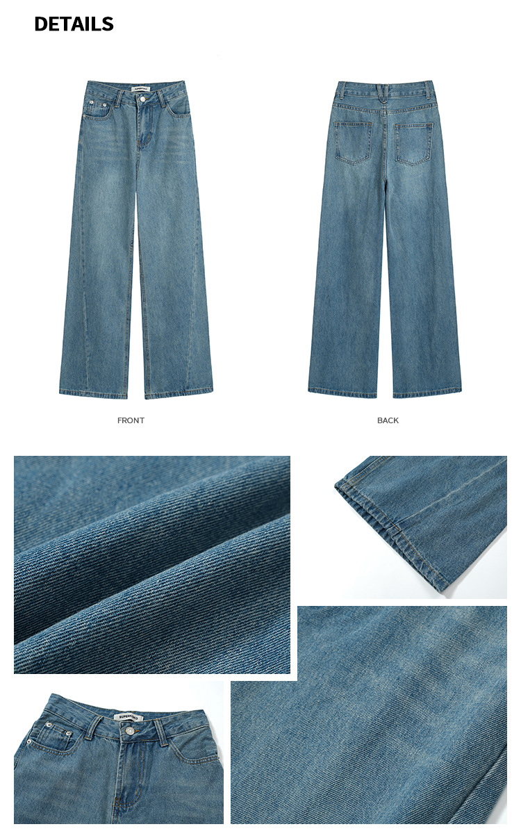 Women's Loose High Waist Retro Cropped Patchwork Wide-leg Jeans