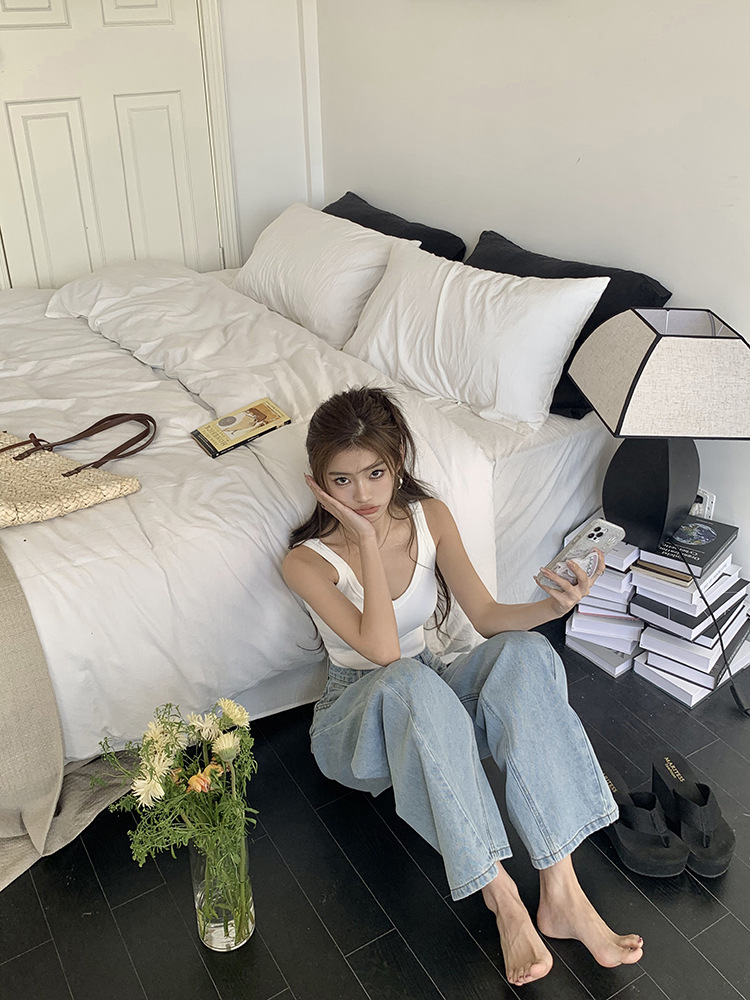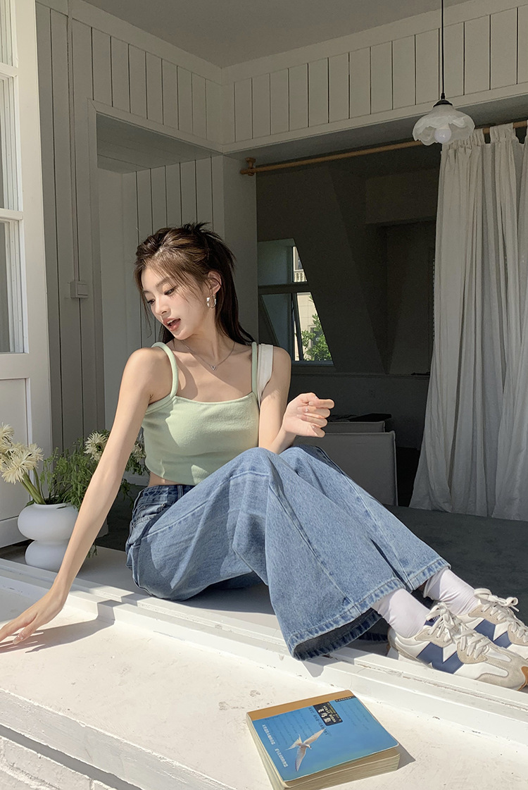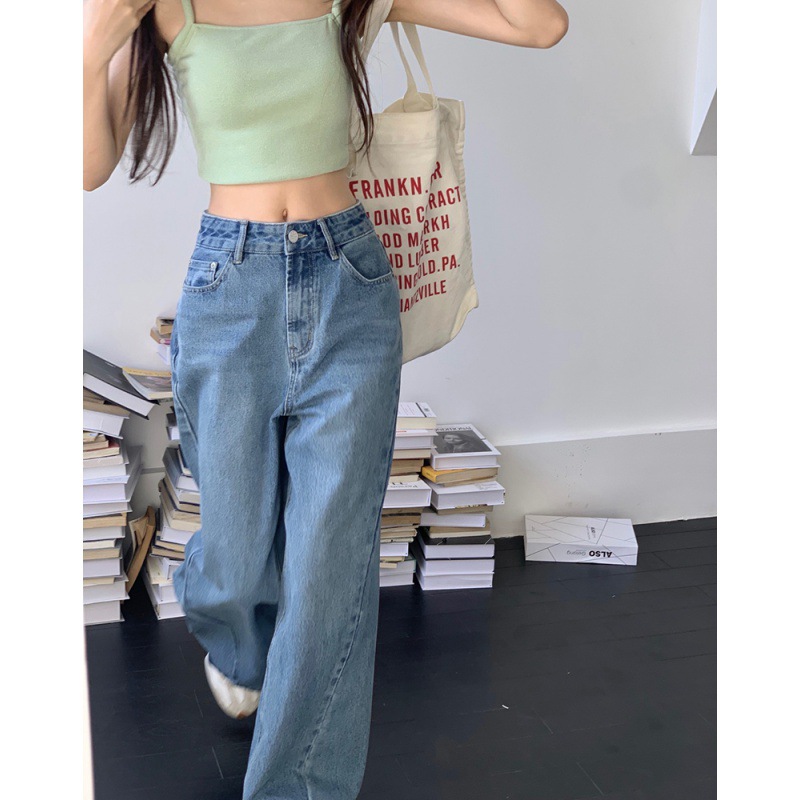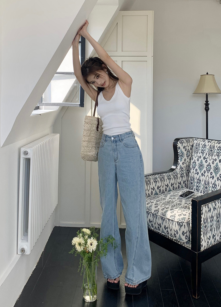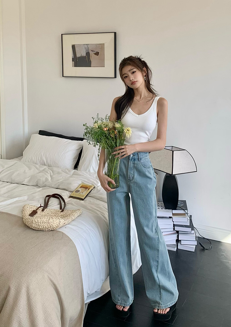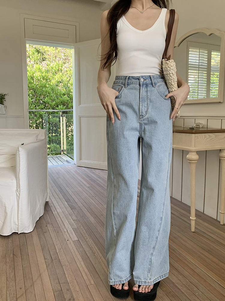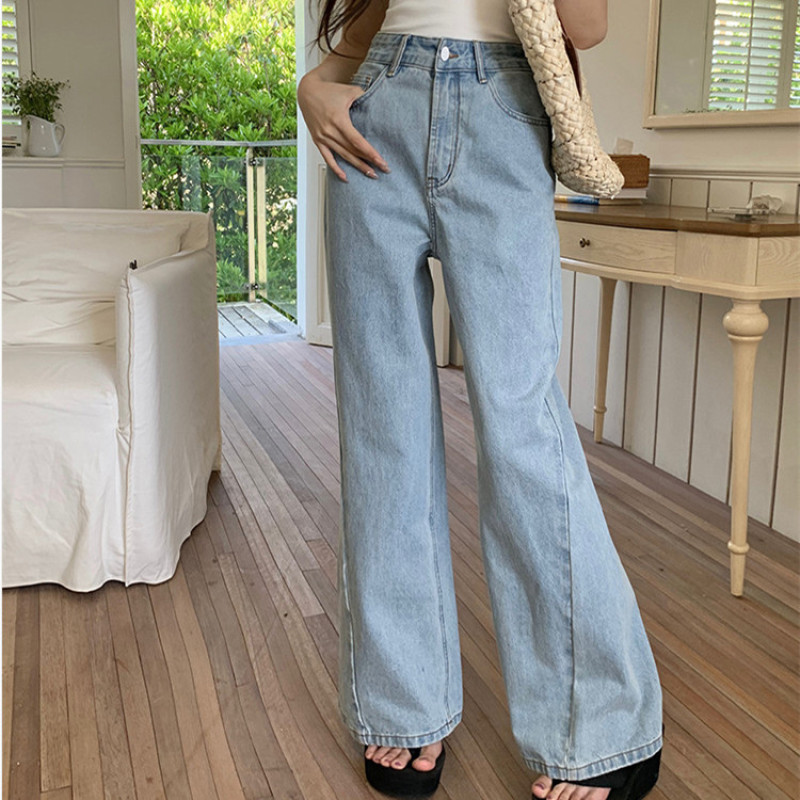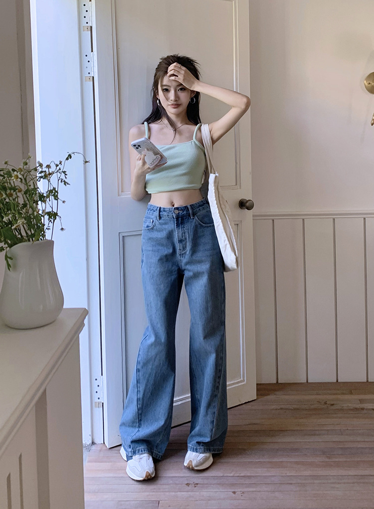 Women's Loose High Waist Retro Cropped Patchwork Wide-leg Jeans
