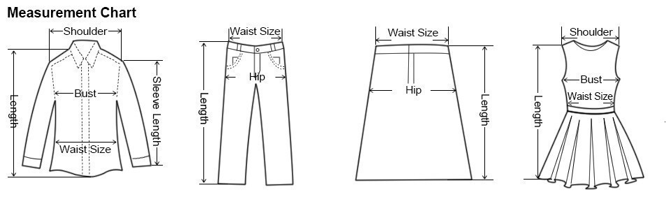 * Note: this clothing size information is for reference only. Body types, specific measurements and designs may vary slightly in size. The color of the item displayed on the photos may be slightly different from the actual color, because the computer screens are not calibrated in the same way.