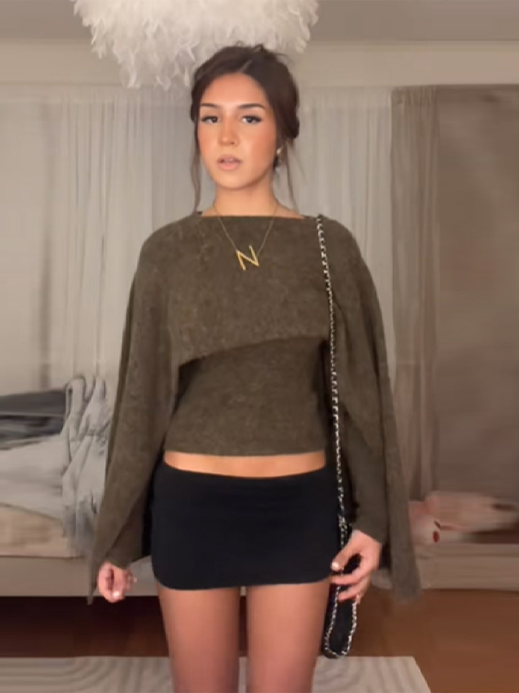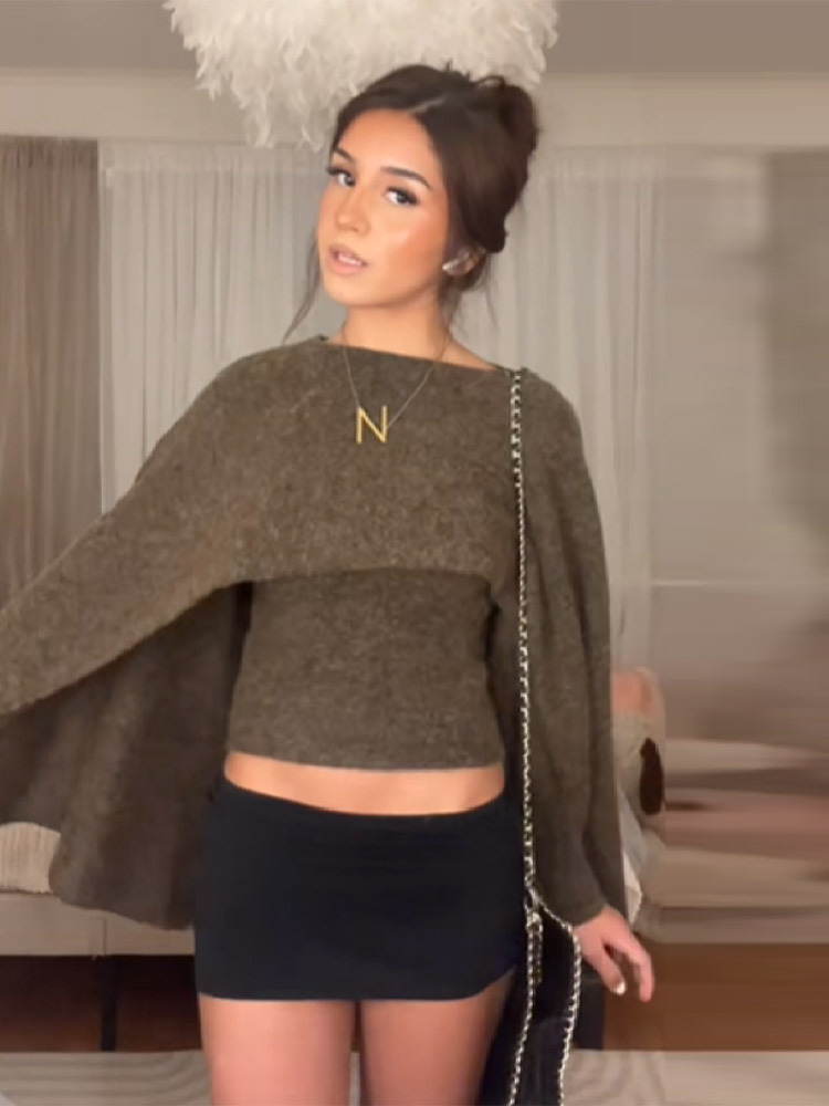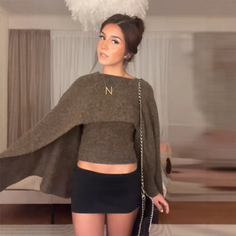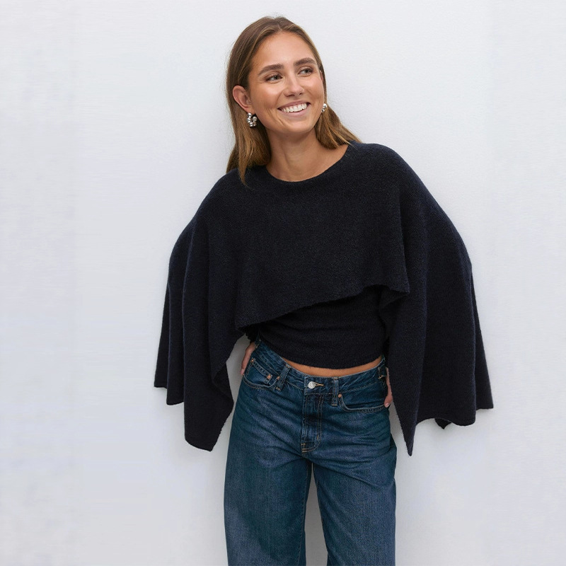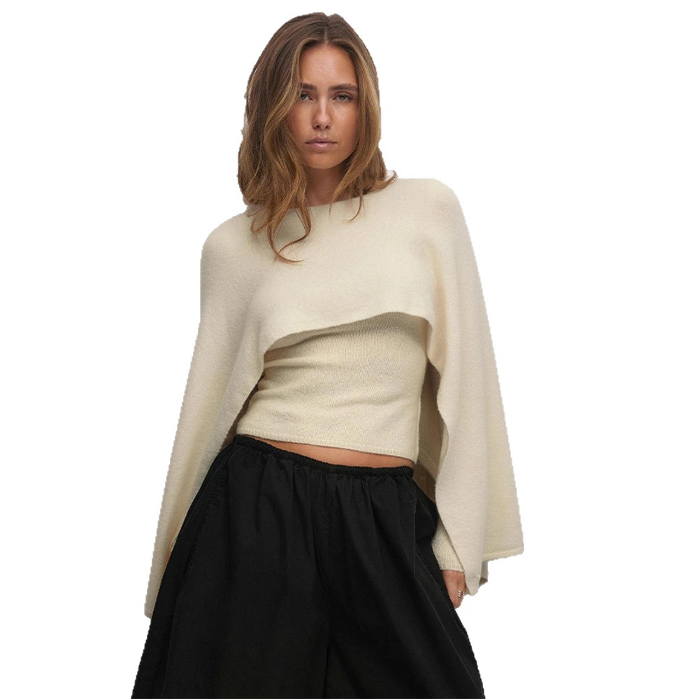 Women's Loose Round Neck Cape Shawl Top Knitted Sweater