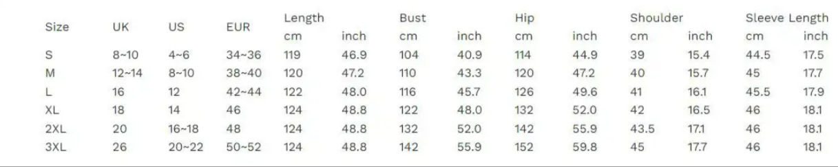 Sizes: S, M, L, XL, 2XL, 3XL