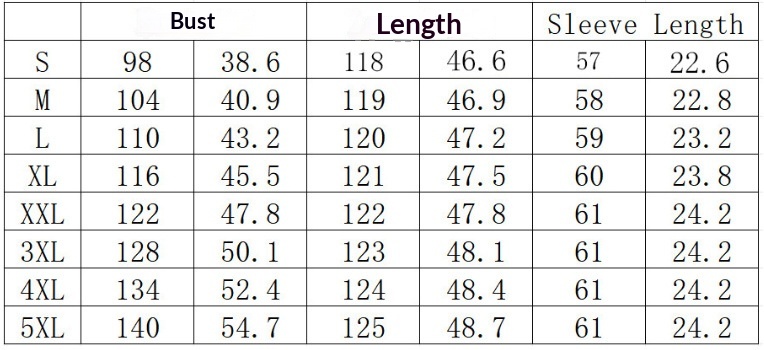 Sizes: S, M, L, XL, XXL, 3XL, 4XL, 5XL