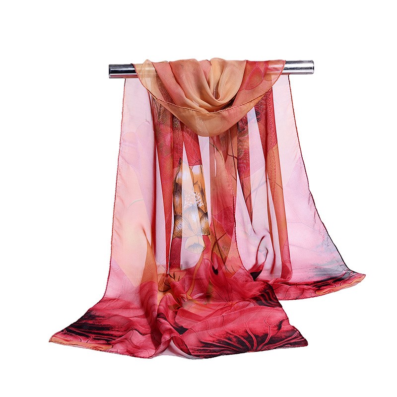 Women's Lotus Print Long Scarf Shawl