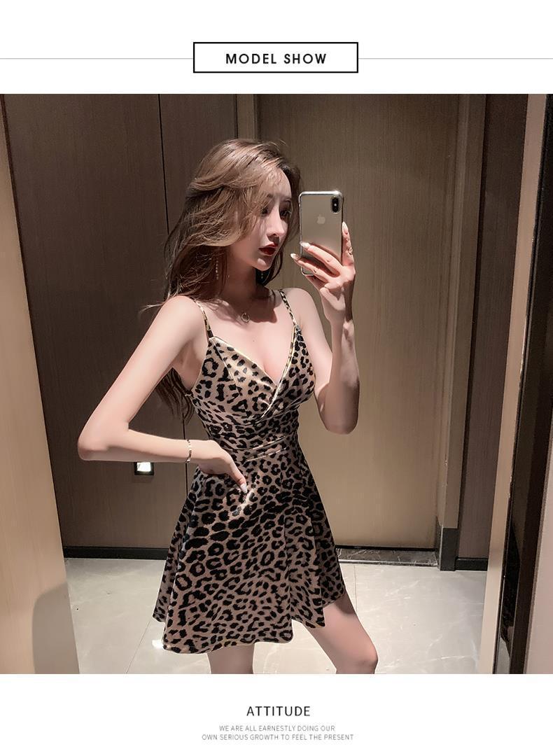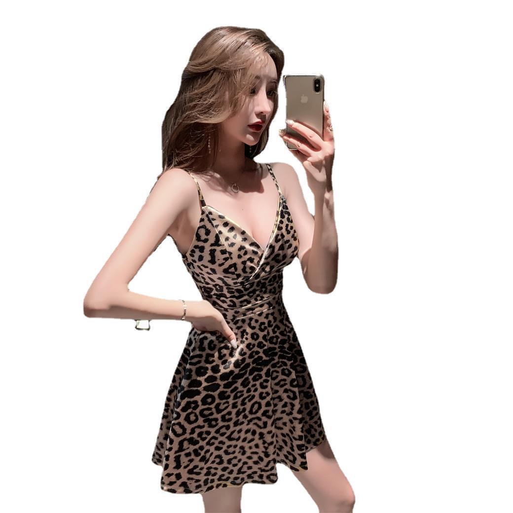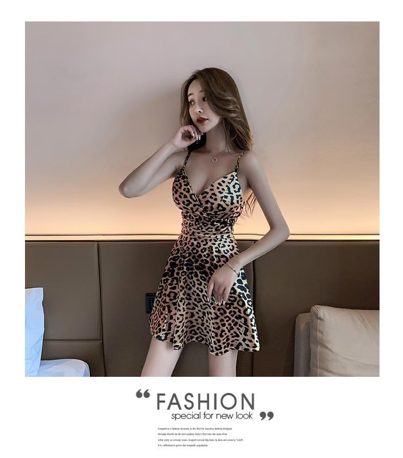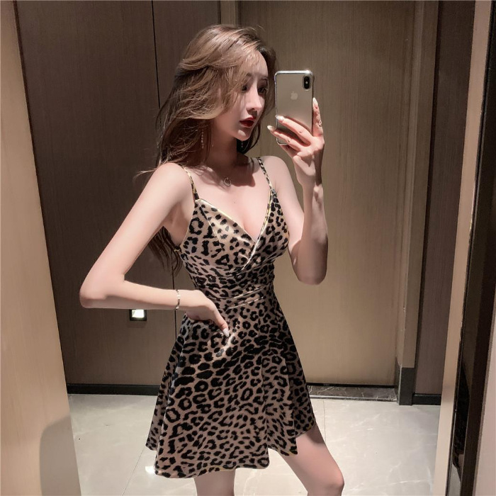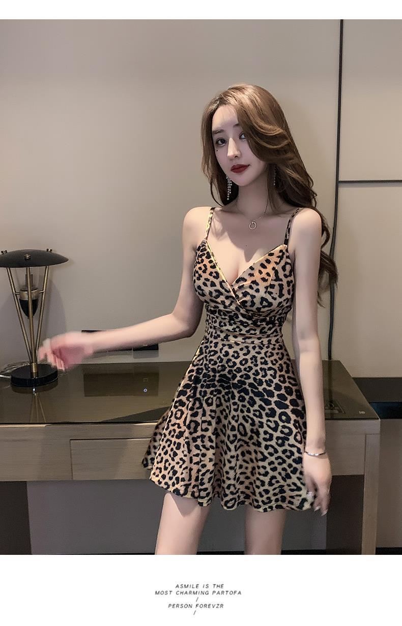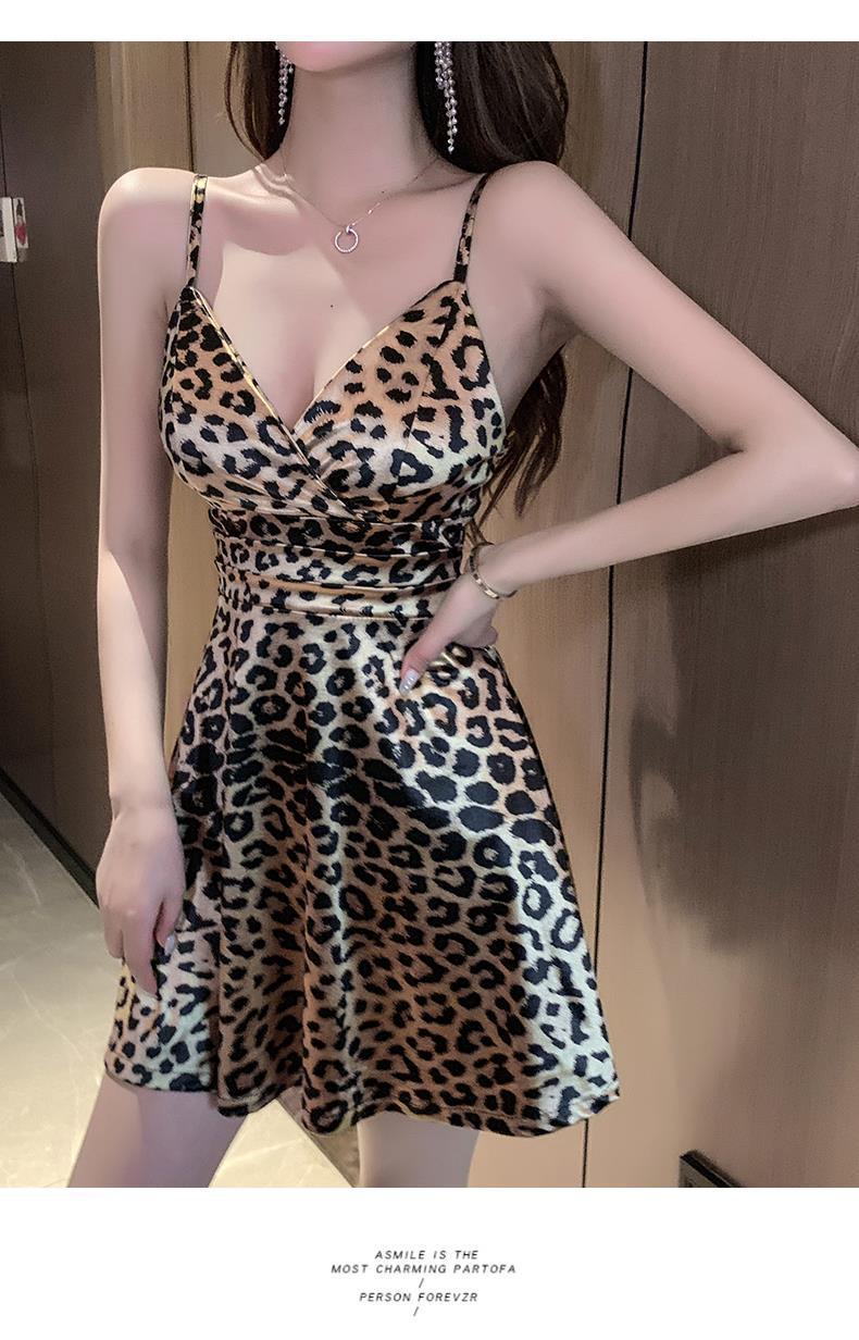 Women's Low-cut Deep V Strap Leopard Print Dress