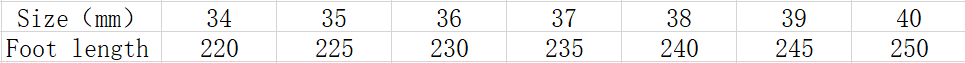 Size: 34, 35, 36, 37, 38, 39, 40, 41, 42, 43