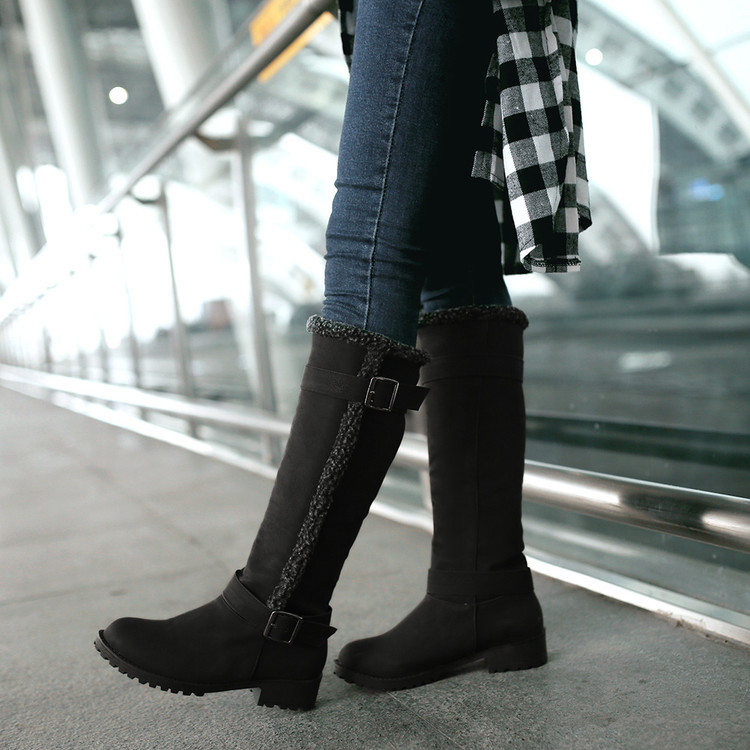 Women's Low Heel Belt Buckle Boots