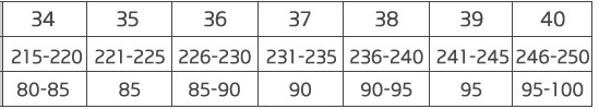 Size: 34, 35, 36, 37, 38, 39, 40, 41, 42