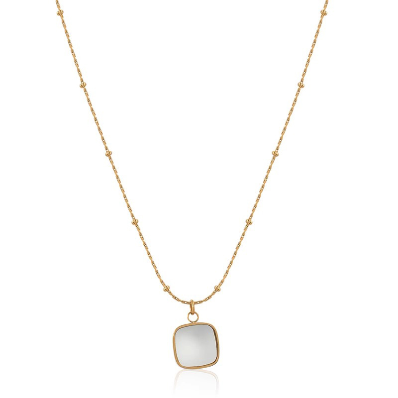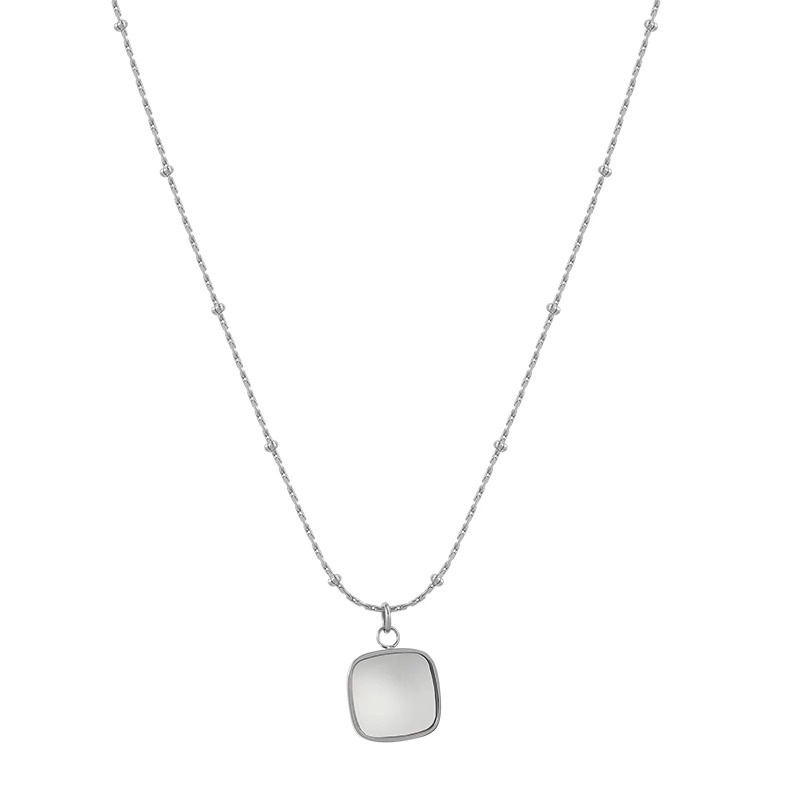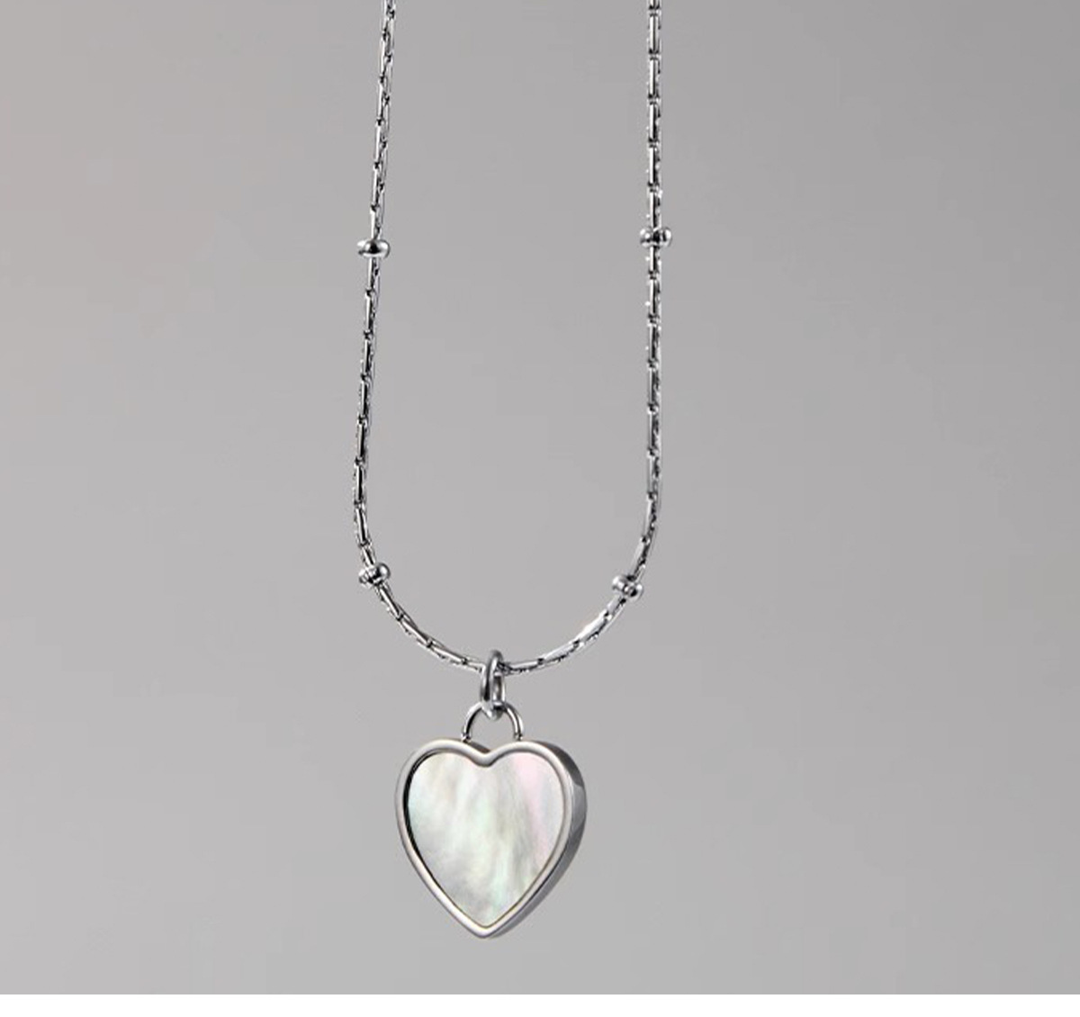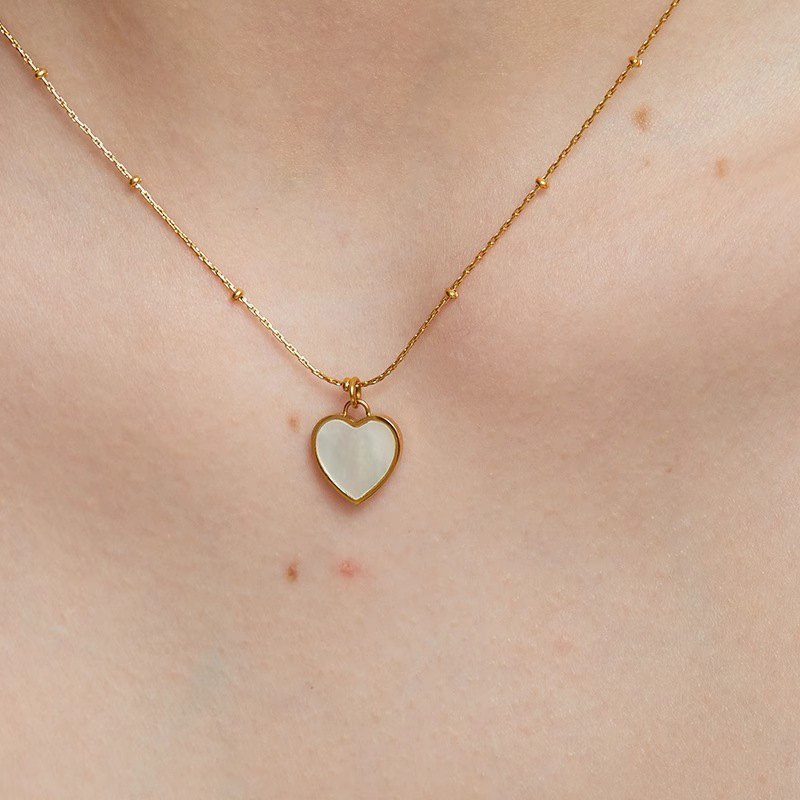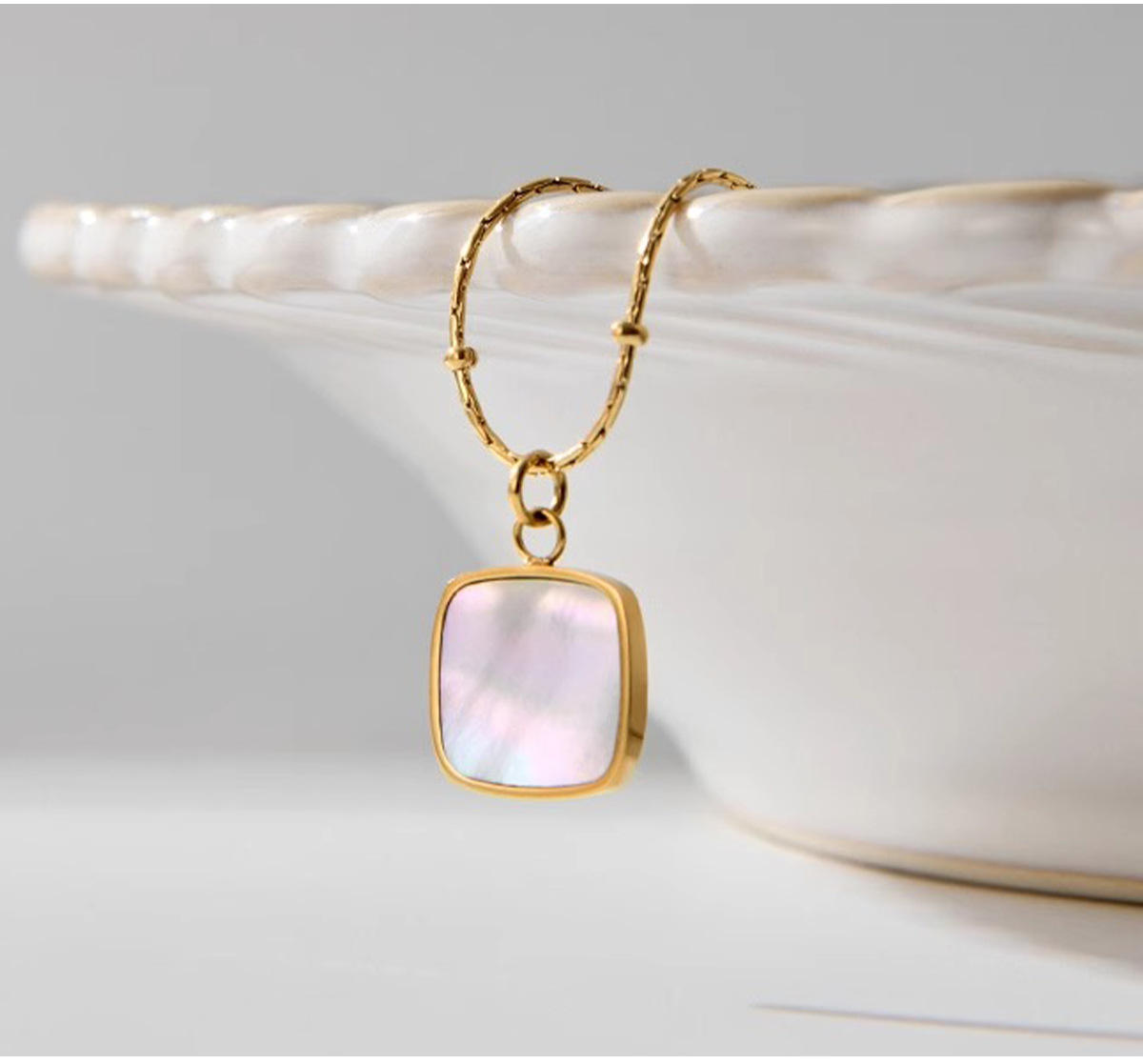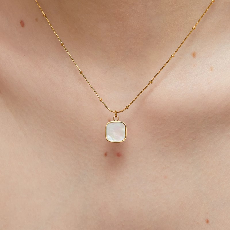 Colors: Heart-Shaped White Mother-of-Pearl Necklace [Gold], Heart-Shaped White Mother-of-Pearl Necklace [Silver], Square White Mother-of-Pearl Necklace [Gold], Square White Mother-of-Pearl Necklace [Silver]