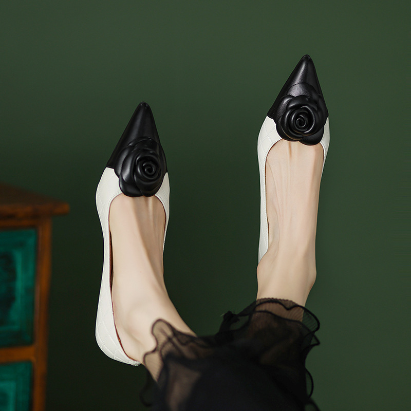 Women's Matching Color Inside And Out All Leather Exquisite Small Fragrance Wind Heel Shoes