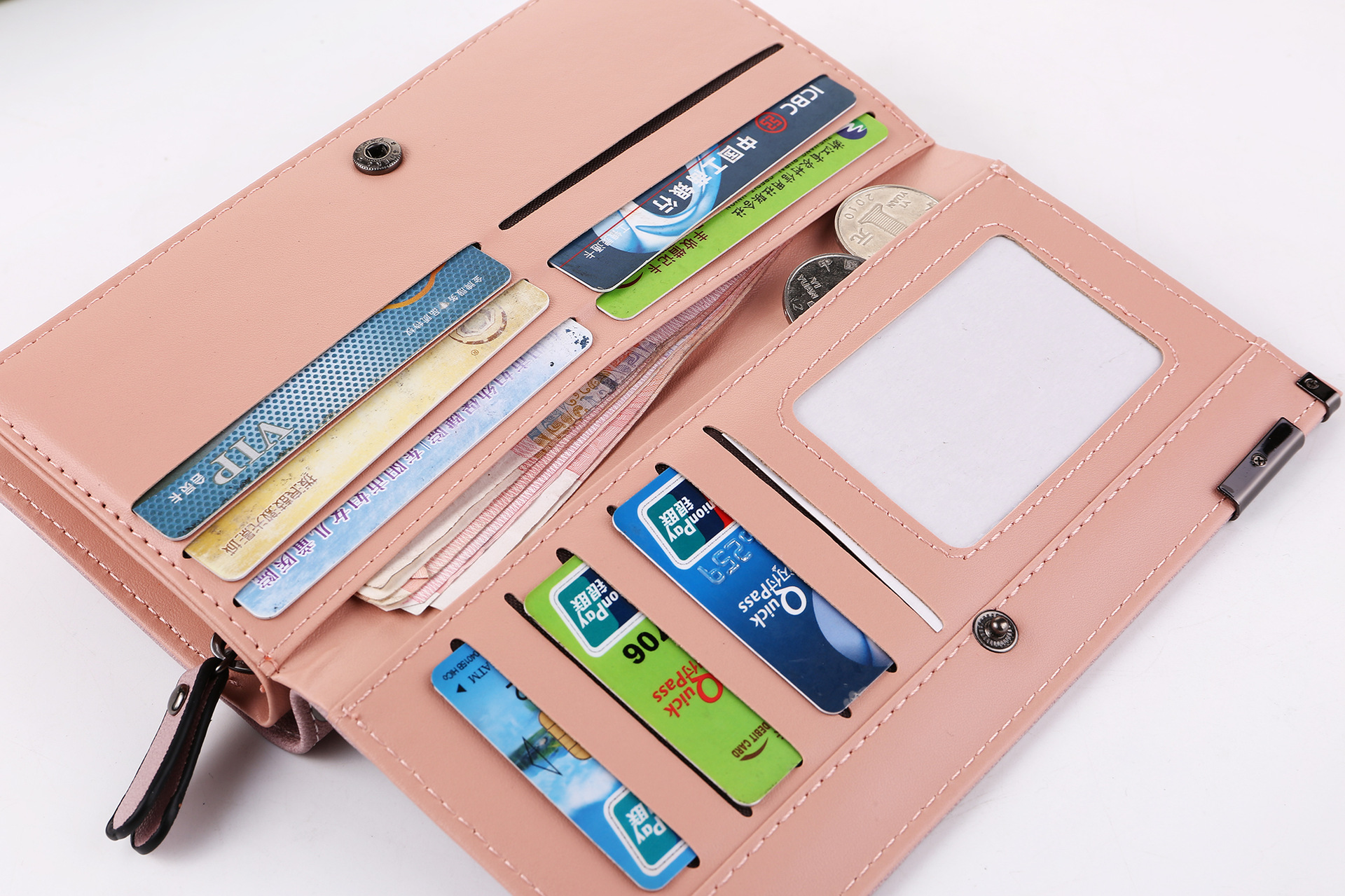 Internal structure of the packet: photo, bill holder, card, hidden compartment, change, passbook