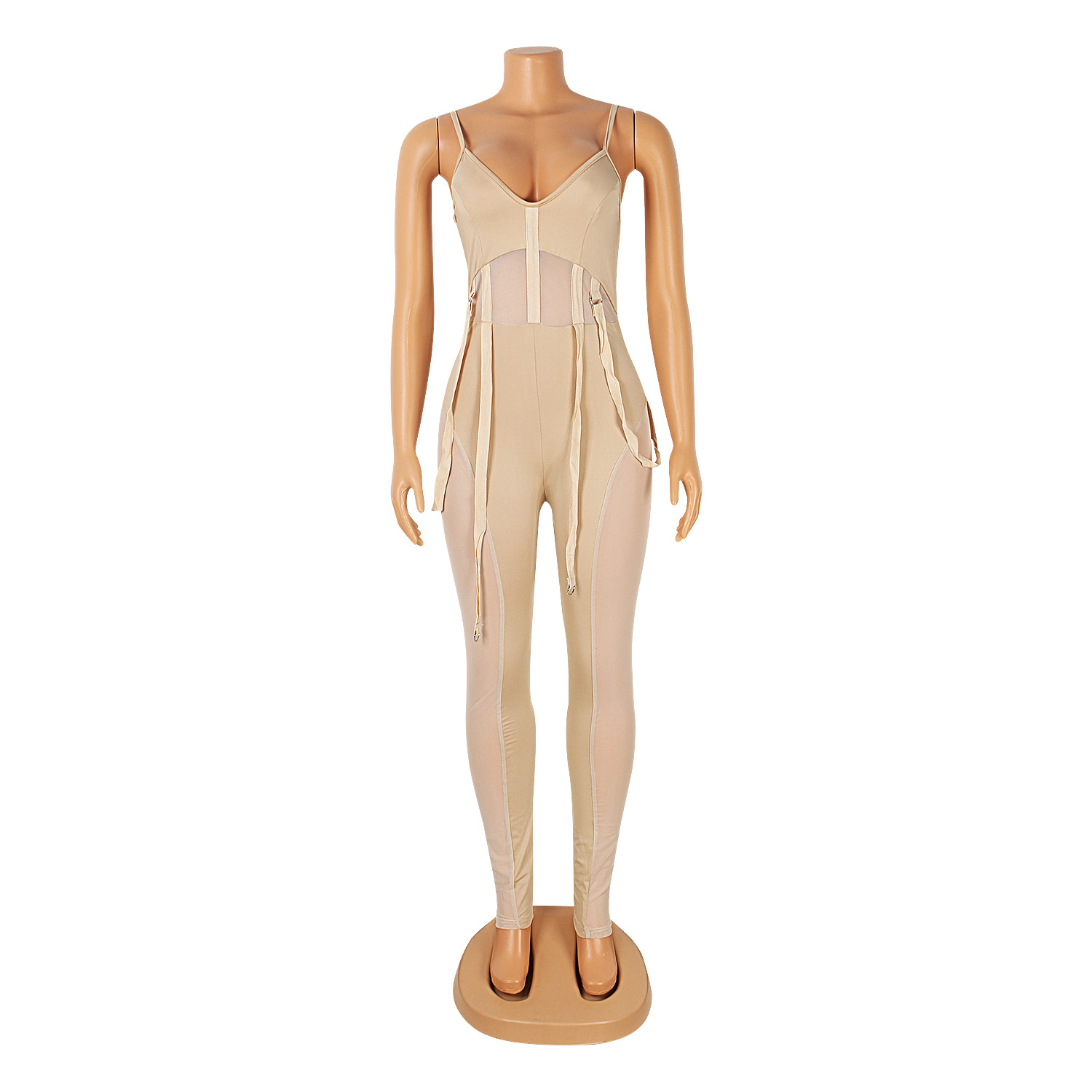 Women's Mesh See-through Suspender Jumpsuit Trousers