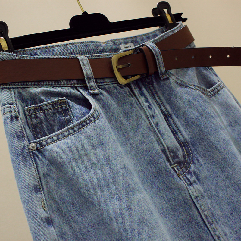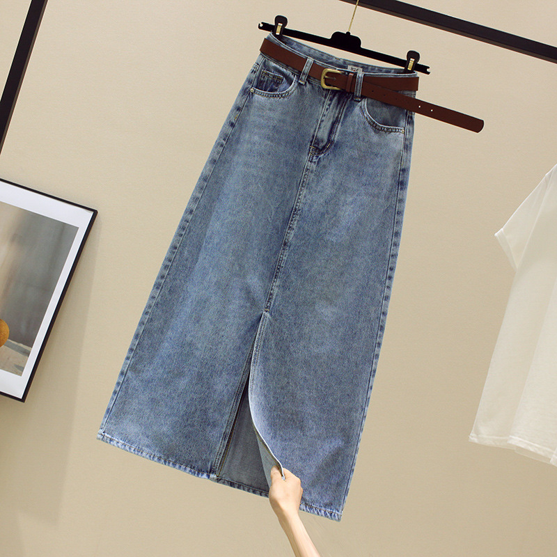 Women's Mid-length Skirt For Spring And Summer High Waist Slit Denim