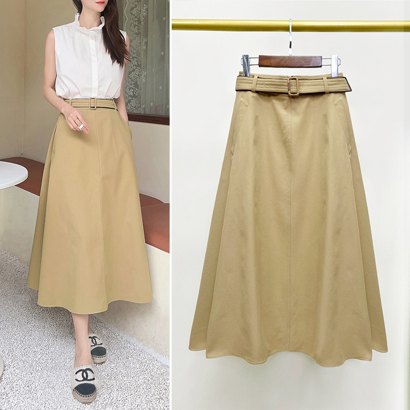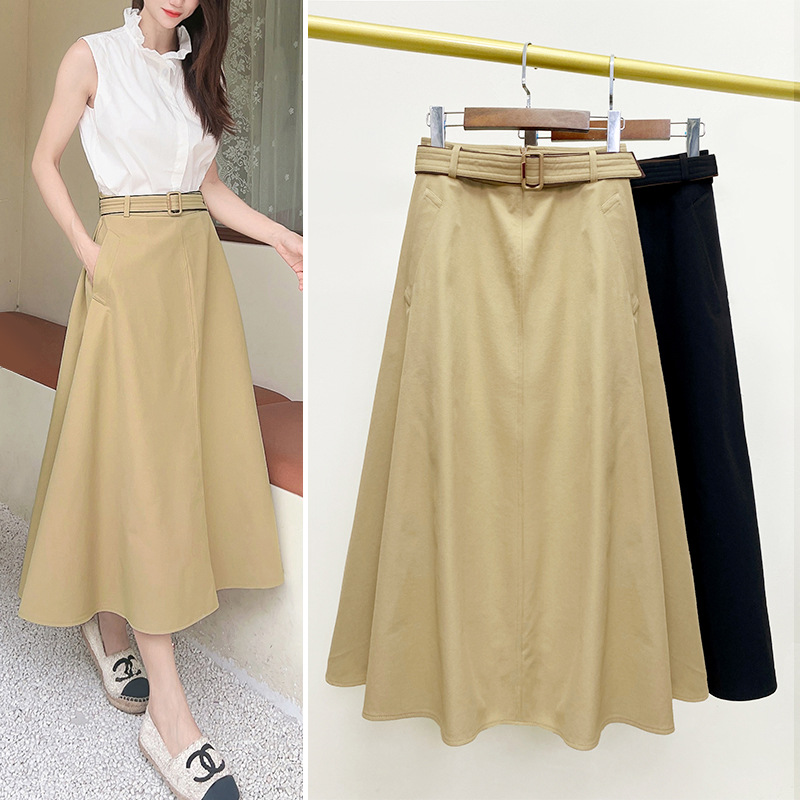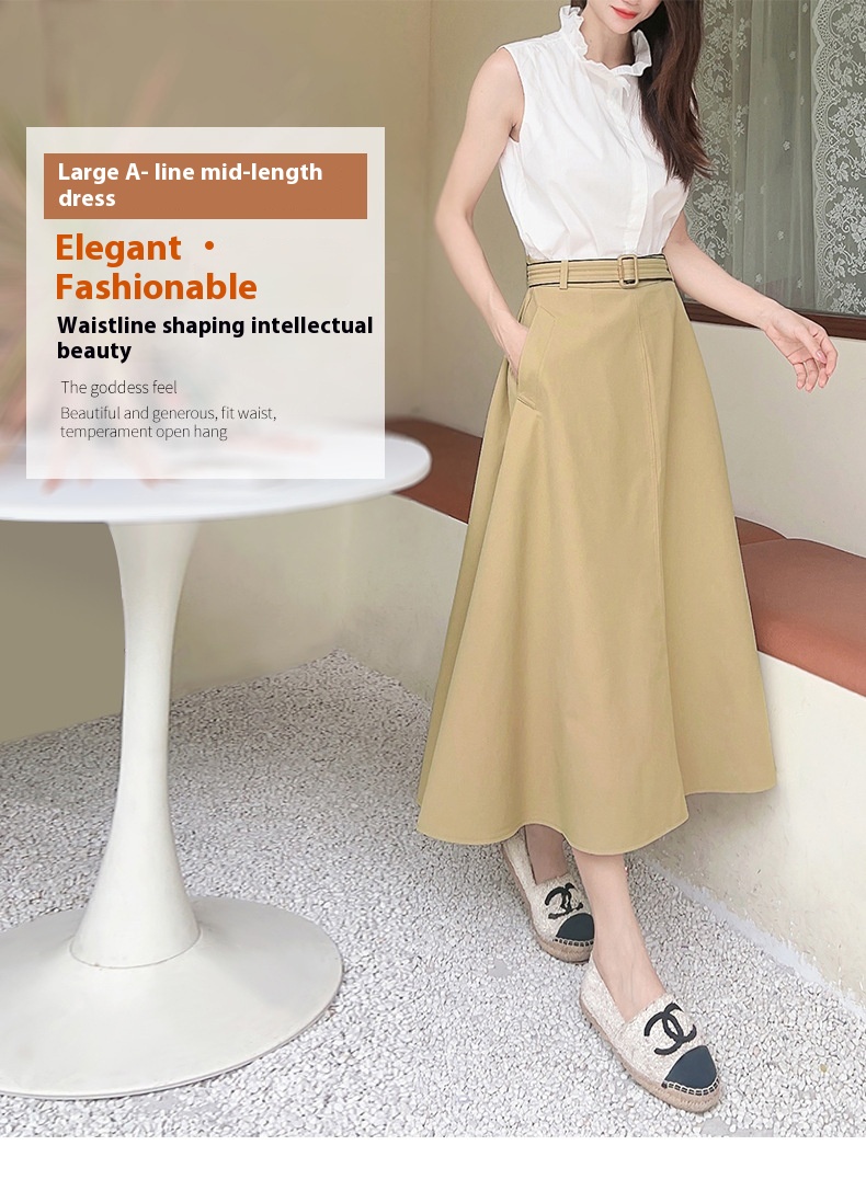 Women's Mid-length Skirt High Waist Tight Waist A- Line Large Hem Umbrella Skirt