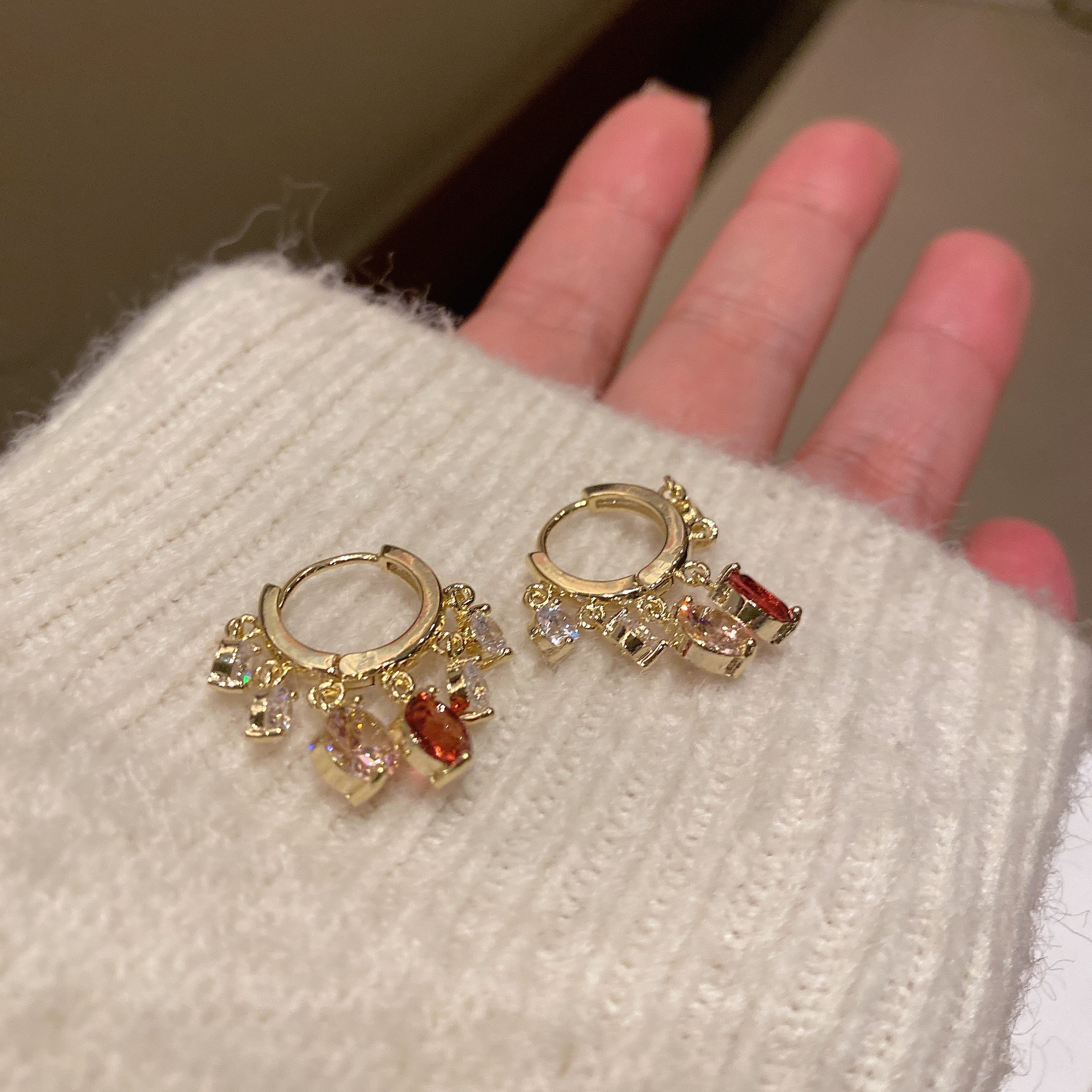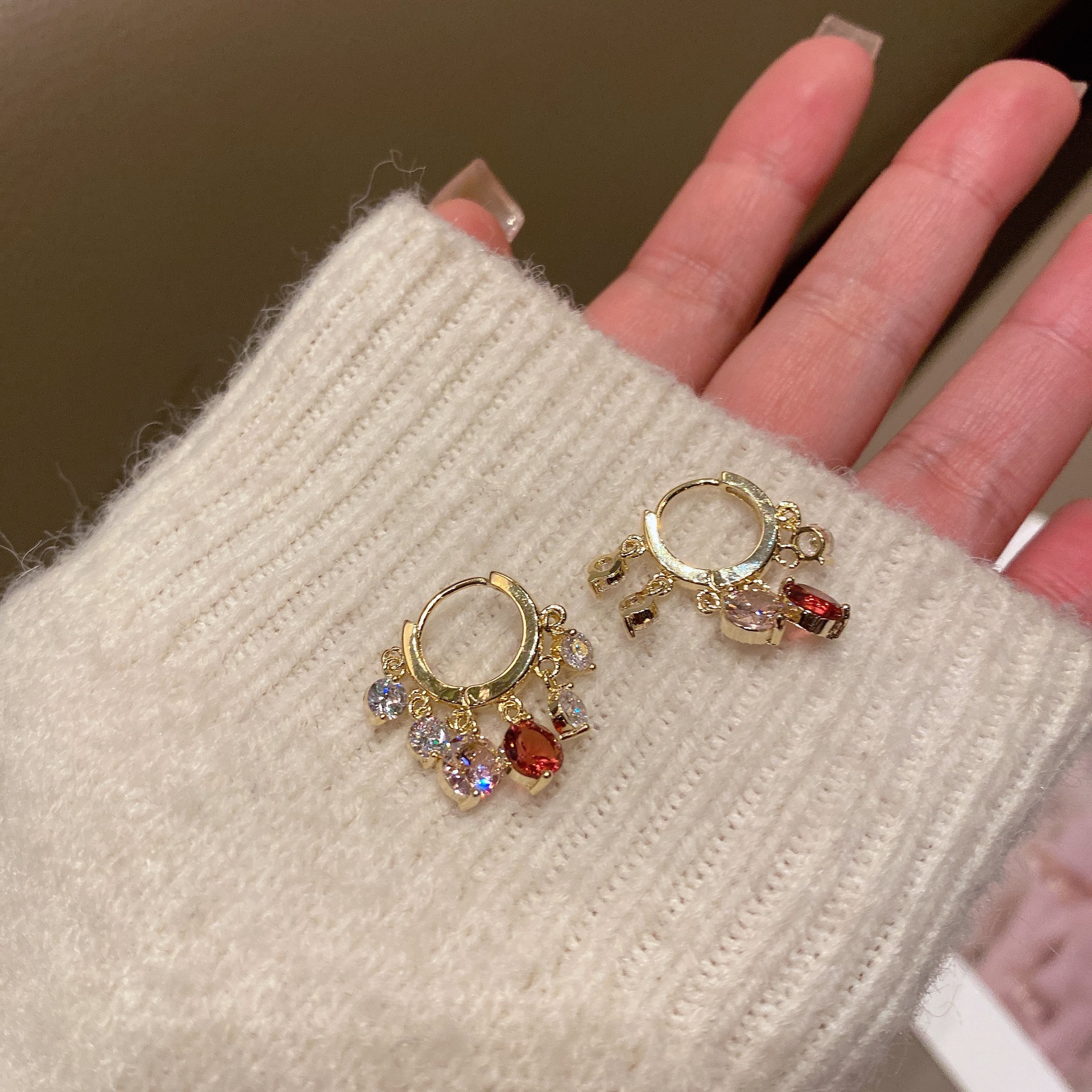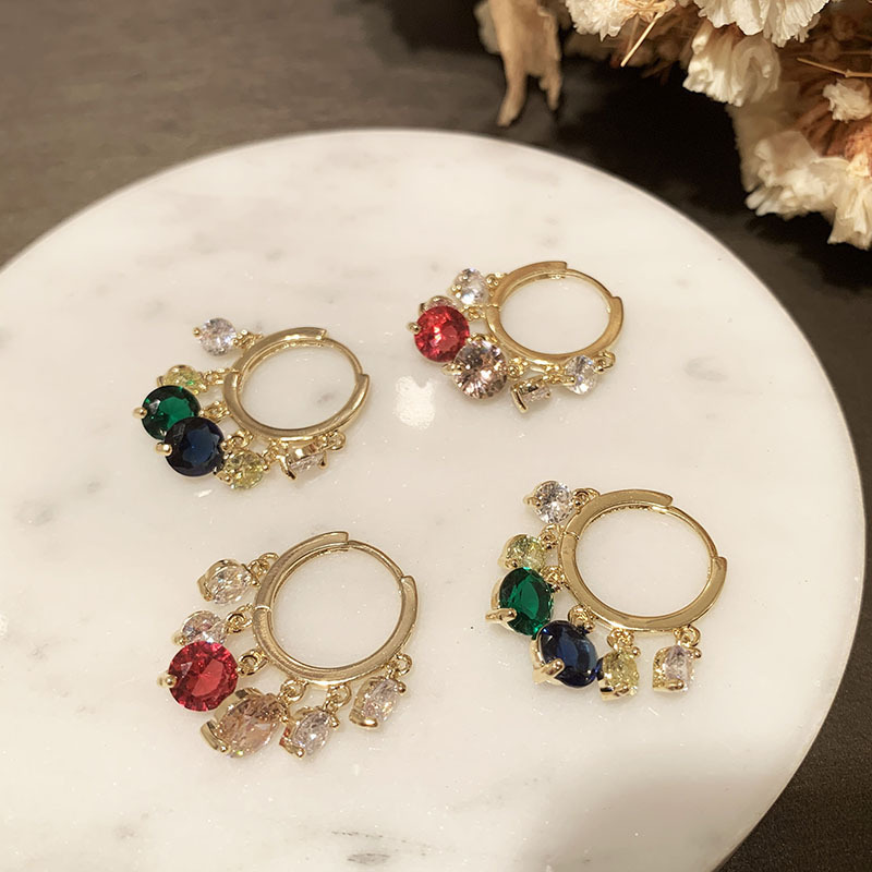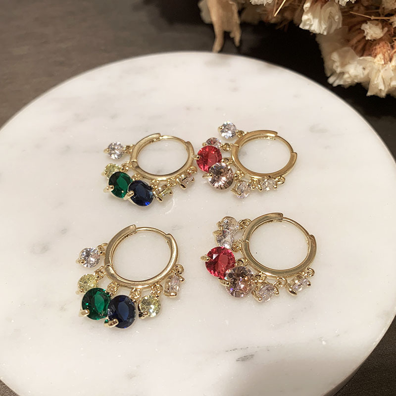 Colors: D0027 White Zircon—Gold, D0028 White Zircon—Silver, D0029 Pink—White Zircon—Gold, D0030 Blue—Green Zircon—Gold, D0031 Pink—Purple Zircon—Gold