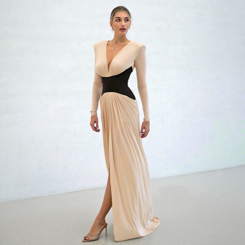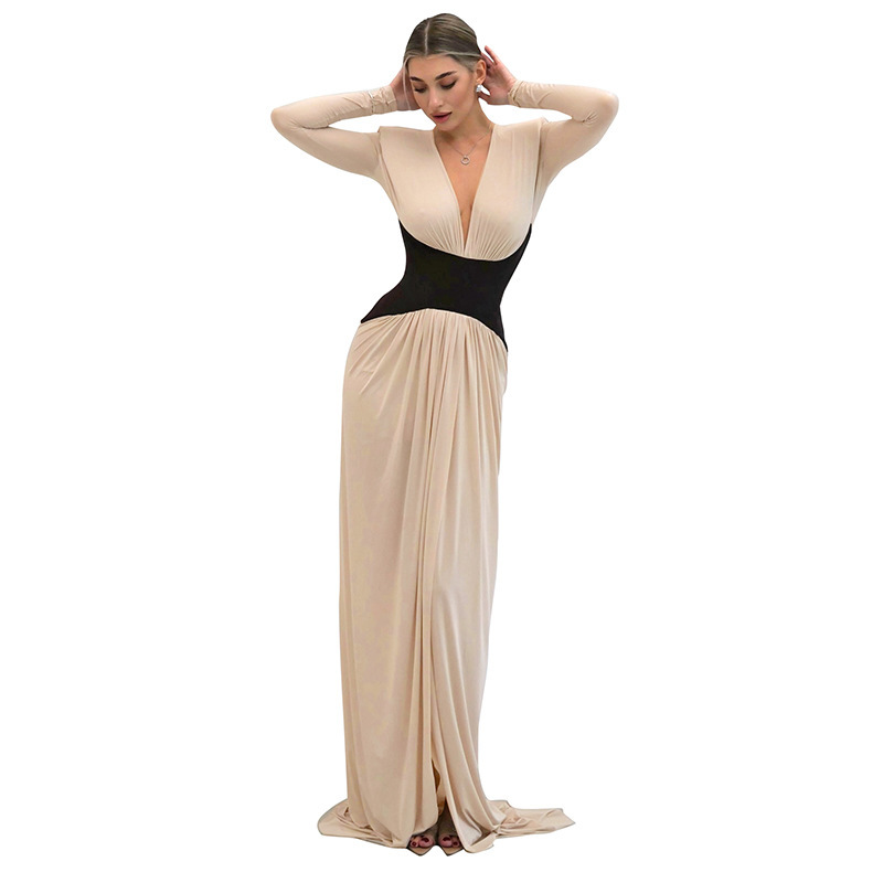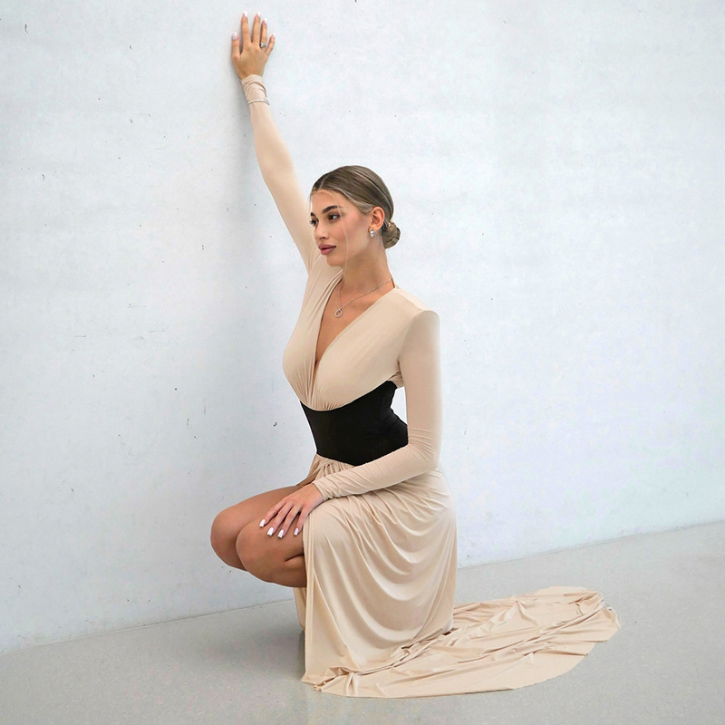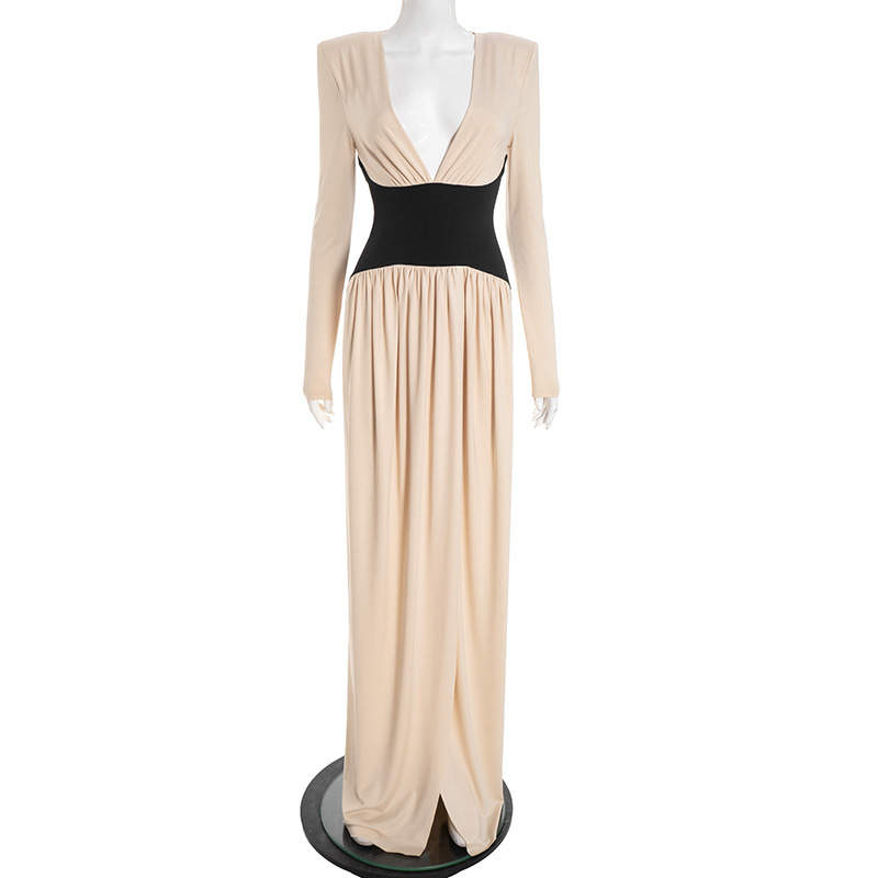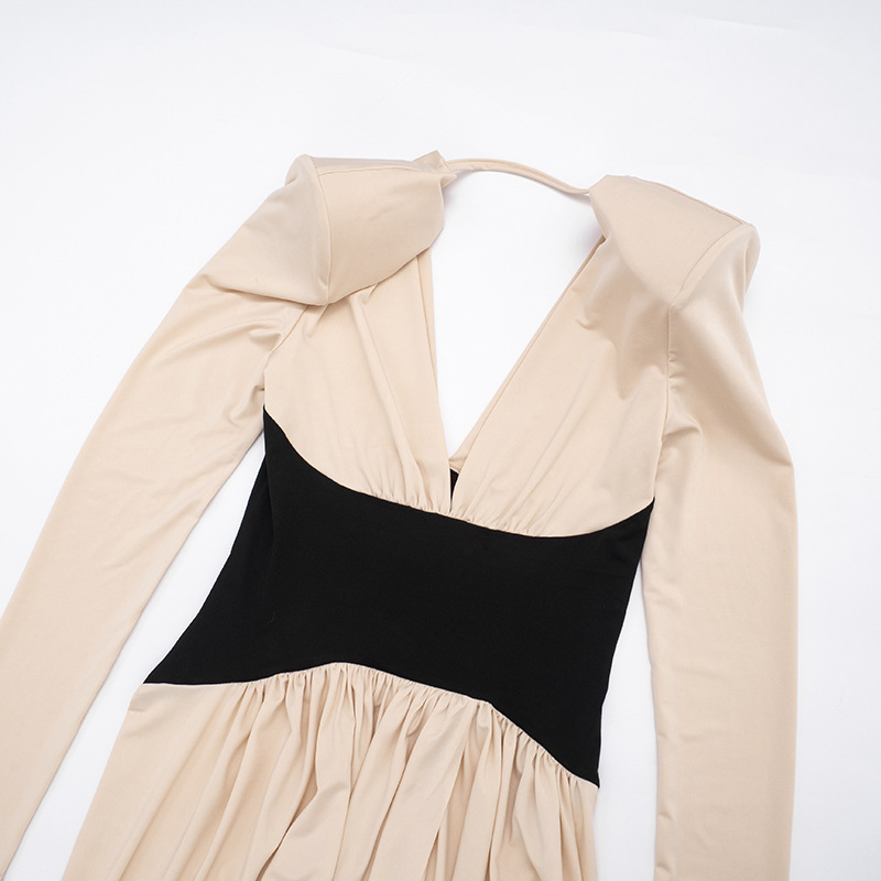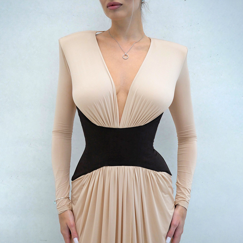 Trendy Elements: V-Neck, Defined Waist, Minimalist Style