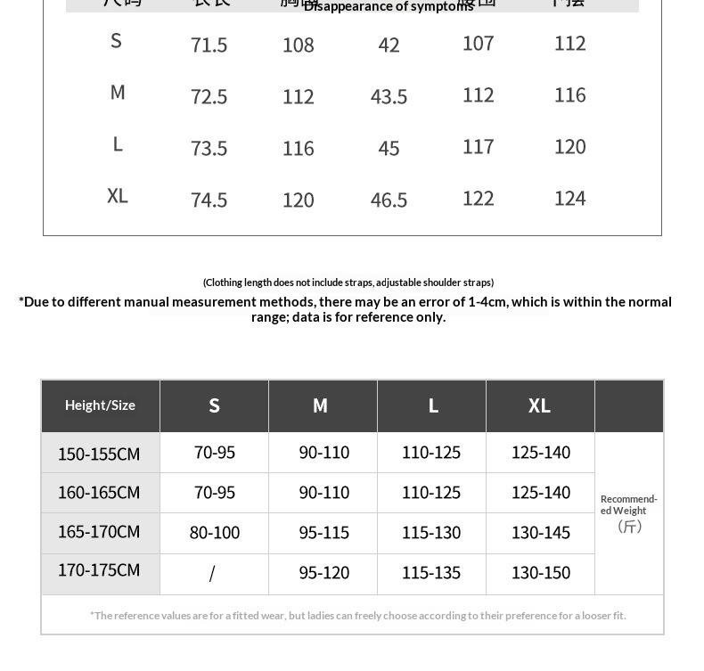 1. Asian sizes are 1 to 2 sizes smaller than European and American people. Choose the larger size if your size between two sizes. Please allow 2-3cm differences due to manual measurement. 2. Please check the size chart carefully before you buy the item, if you don't know how to choose size, please contact our customer service. 3.As you know, the different computers display colors differently, the color of the actual item may vary slightly from the following images.