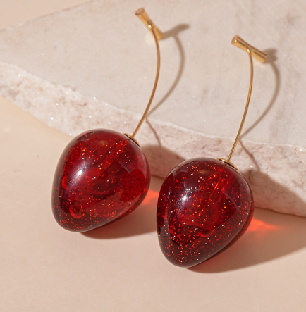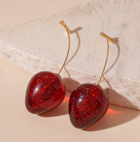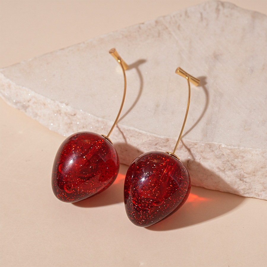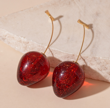 Colors: 74# earrings—gold—red—strawberry; 75# earrings—gold—white—apple