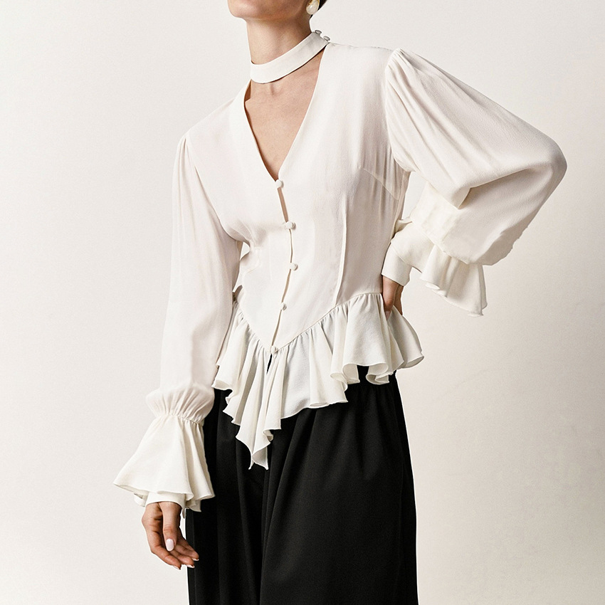 Womens Minimalist White Blouse In European And American Style