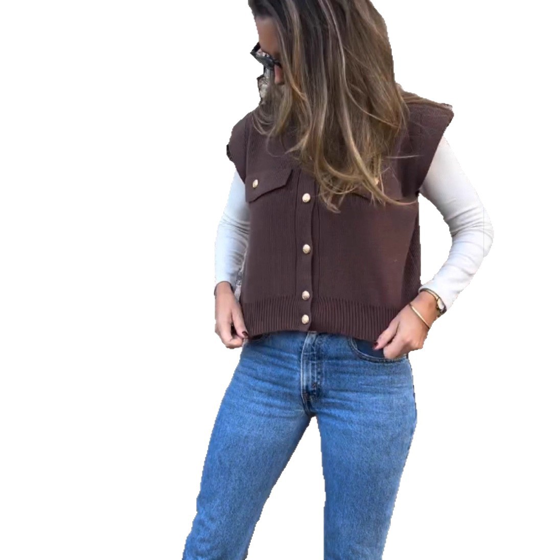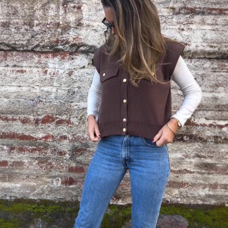 Women's Mink-like Wool Knitted Round Neck Loose Sweater Vest