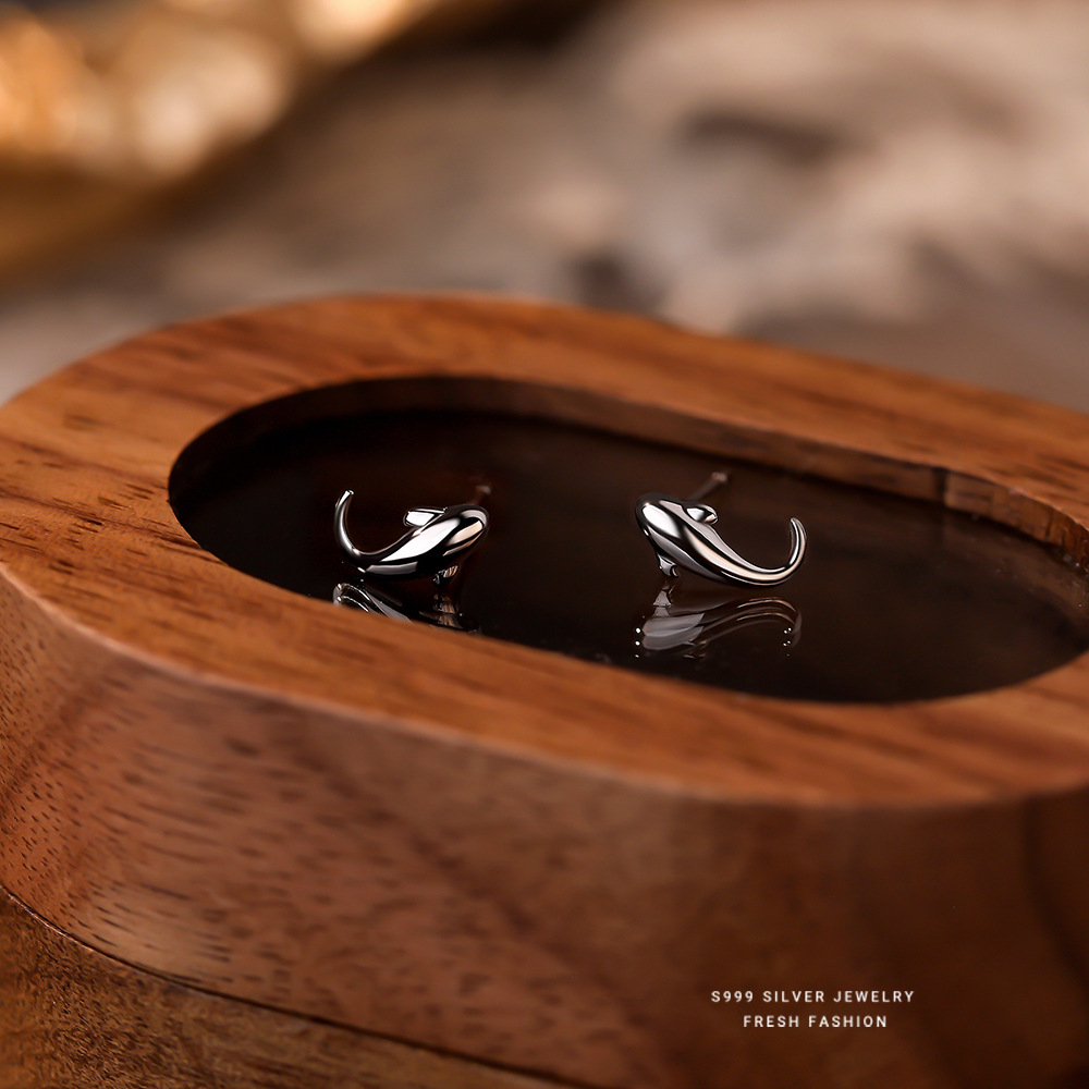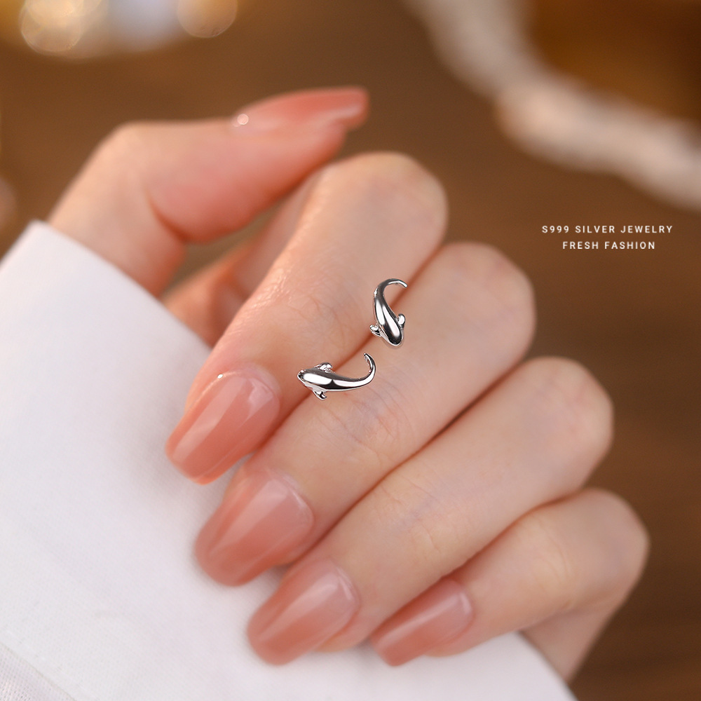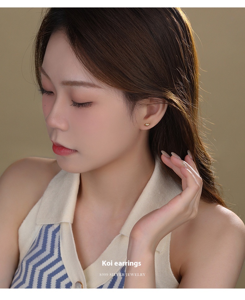 Women's Mori Style S999 Sterling Silver Koi Stud Earrings