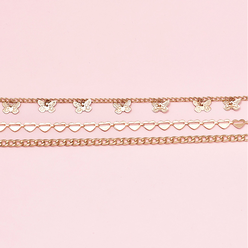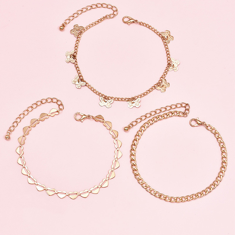Women's multi-layer metal butterfly heart chain anklet combination popular fashion personality new E0592