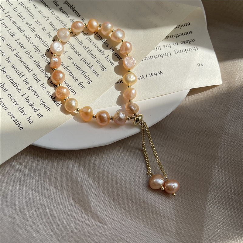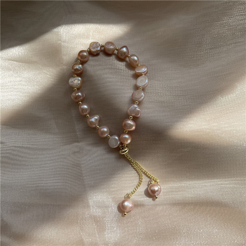 Color: Section 1: a pink natural pearl bracelet with real gold plating, Section 2: a white natural pearl bracelet with real gold plating, Section 3: a purple natural pearl bracelet with real gold plating