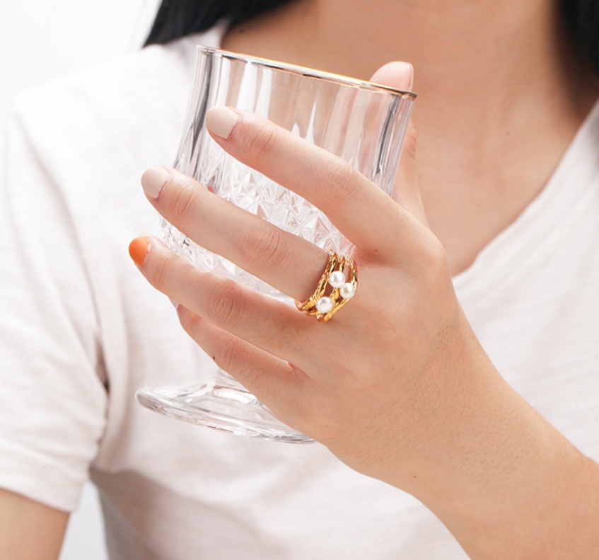 Women's Natural Freshwater Pearl Hollowed-out Ring