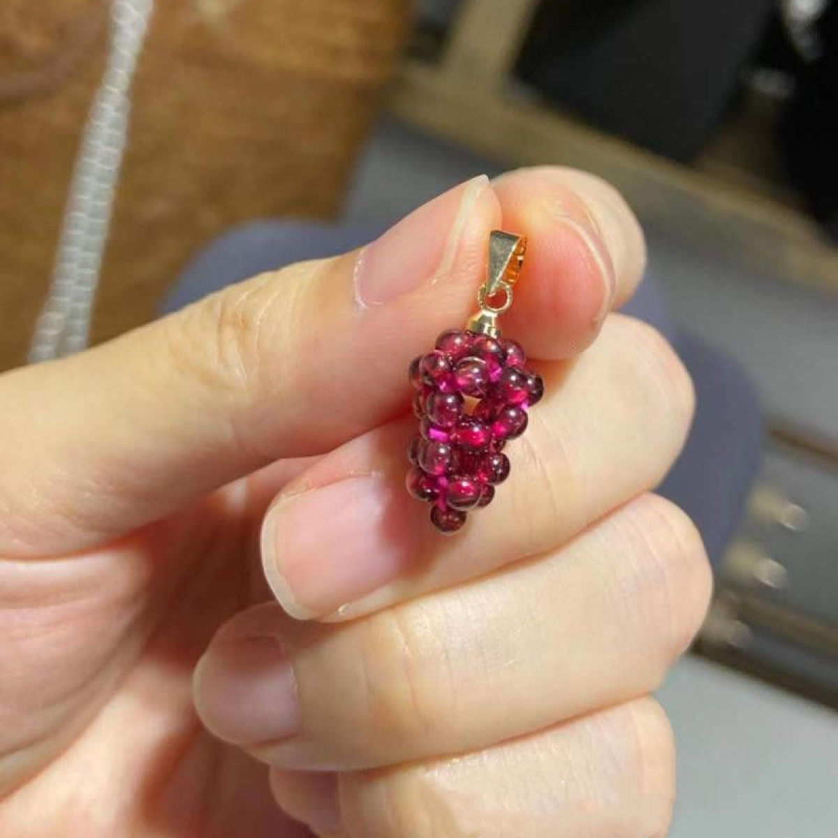 Color: natural garnet purple grape pendant (get leather rope)
