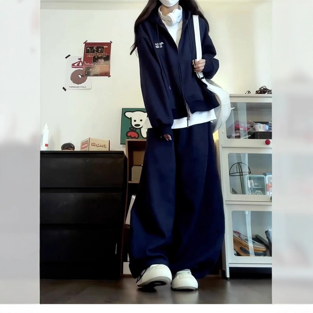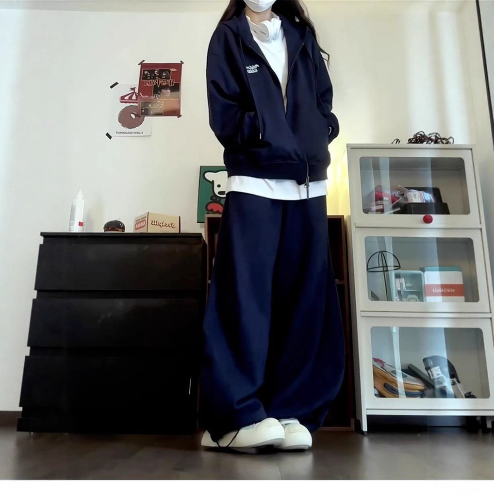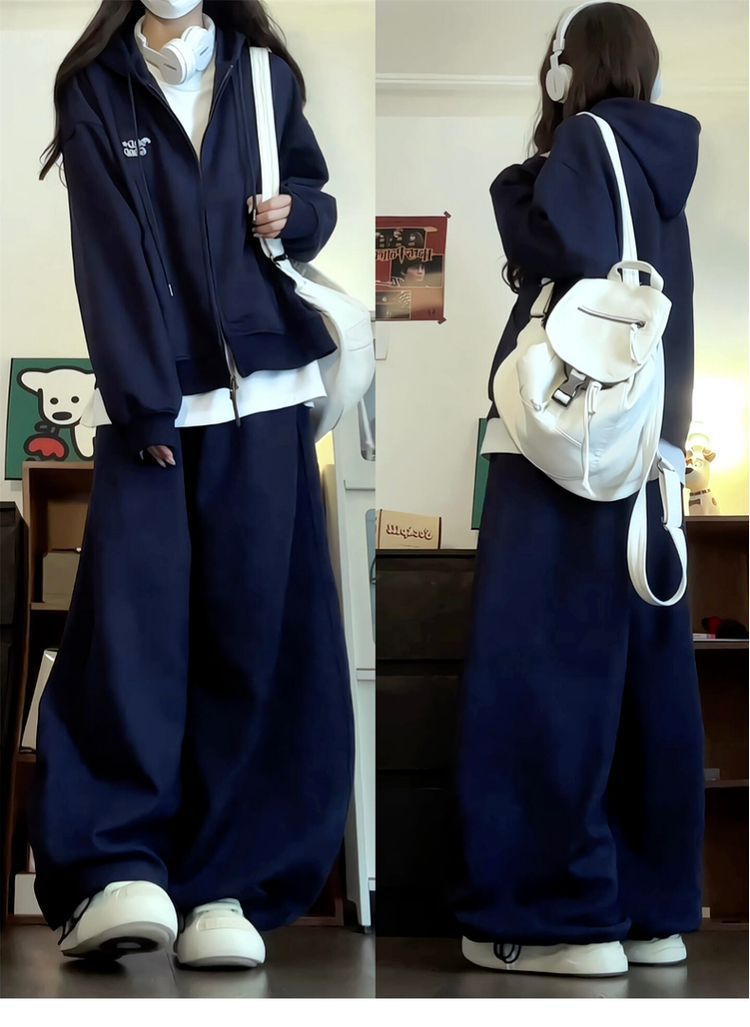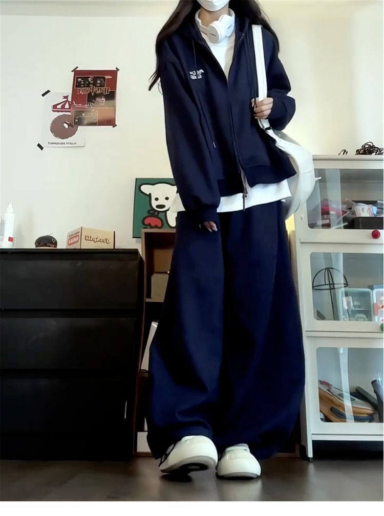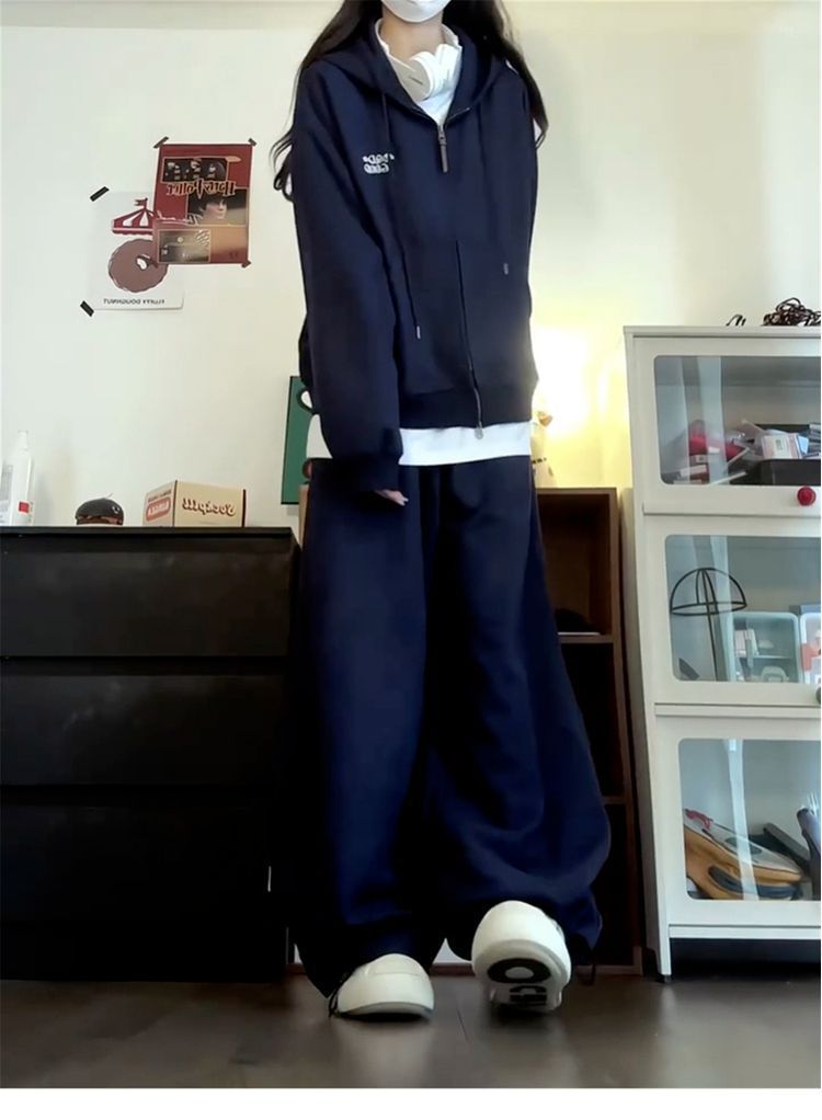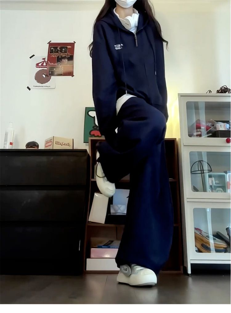 Pattern: . Fabric name: polyester Color: navy blue (regular style), navy blue (fleece style) Sleeve type: regular sleeve Pants length: pants Main fabric composition: polyester Size: S, M, L, XL, XXL Applicable gender: female Style type: Japanese and Korean casual Sleeve length: long sleeve Popular elements: solid color Style: Korean style Craft: collage/splicing