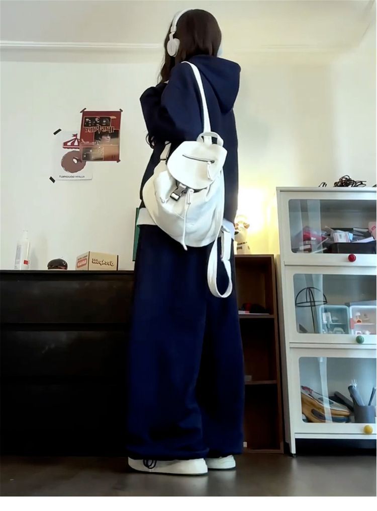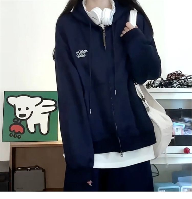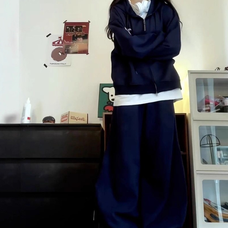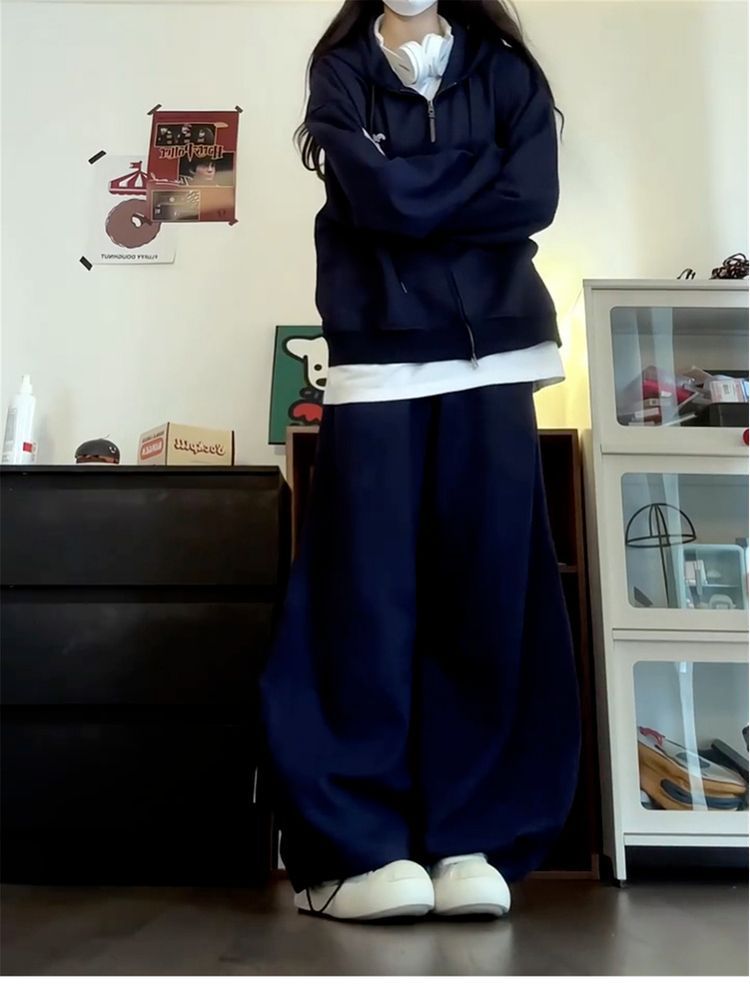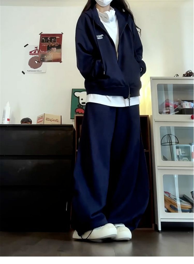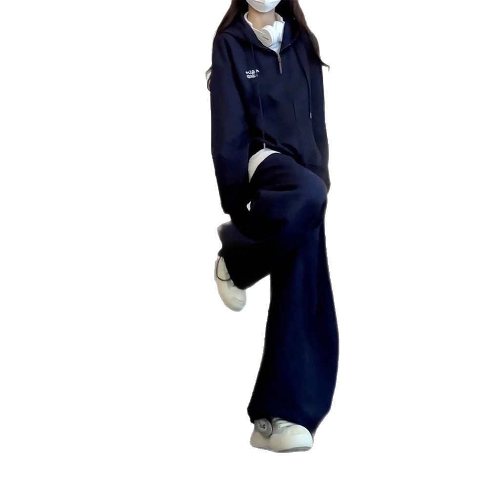 Pattern: . Fabric name: polyester Color: navy blue (regular style), navy blue (fleece style) Sleeve type: regular sleeve Pants length: pants Main fabric composition: polyester Size: S, M, L, XL, XXL Applicable gender: female Style type: Japanese and Korean casual Sleeve length: long sleeve Popular elements: solid color Style: Korean style Craft: collage/splicing