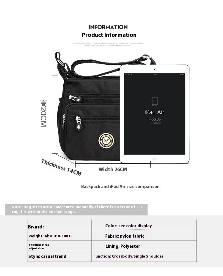 Bag internal structure: zipper bag, mobile phone bag, file bag