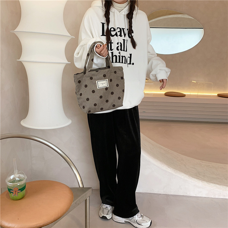 Color: apricot polka dots, grey polka dots