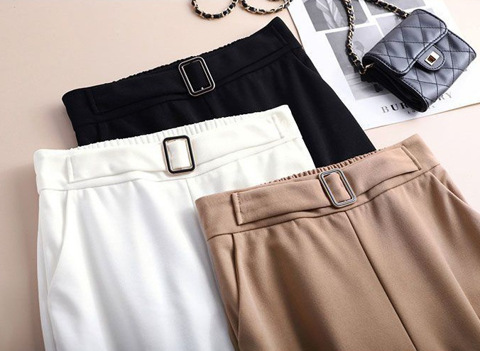 Color: black trousers, white trousers, khaki trousers