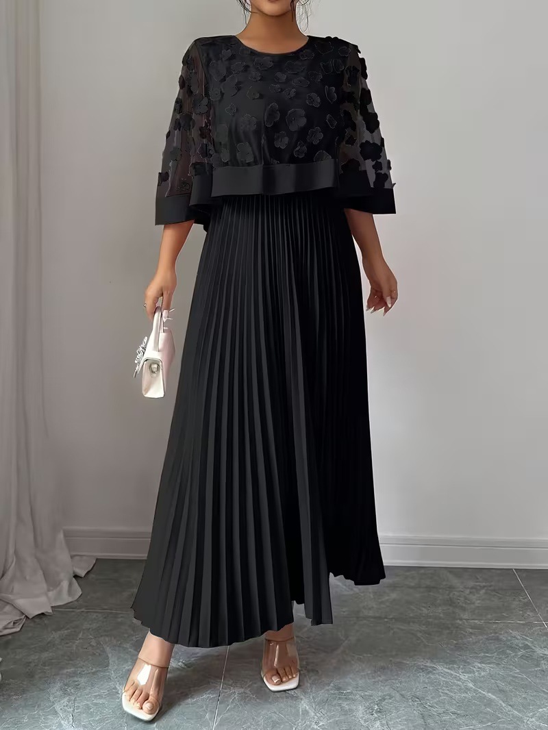 Womens New Elegant & Sophisticated 3D Floral Mesh Patchwork Dress