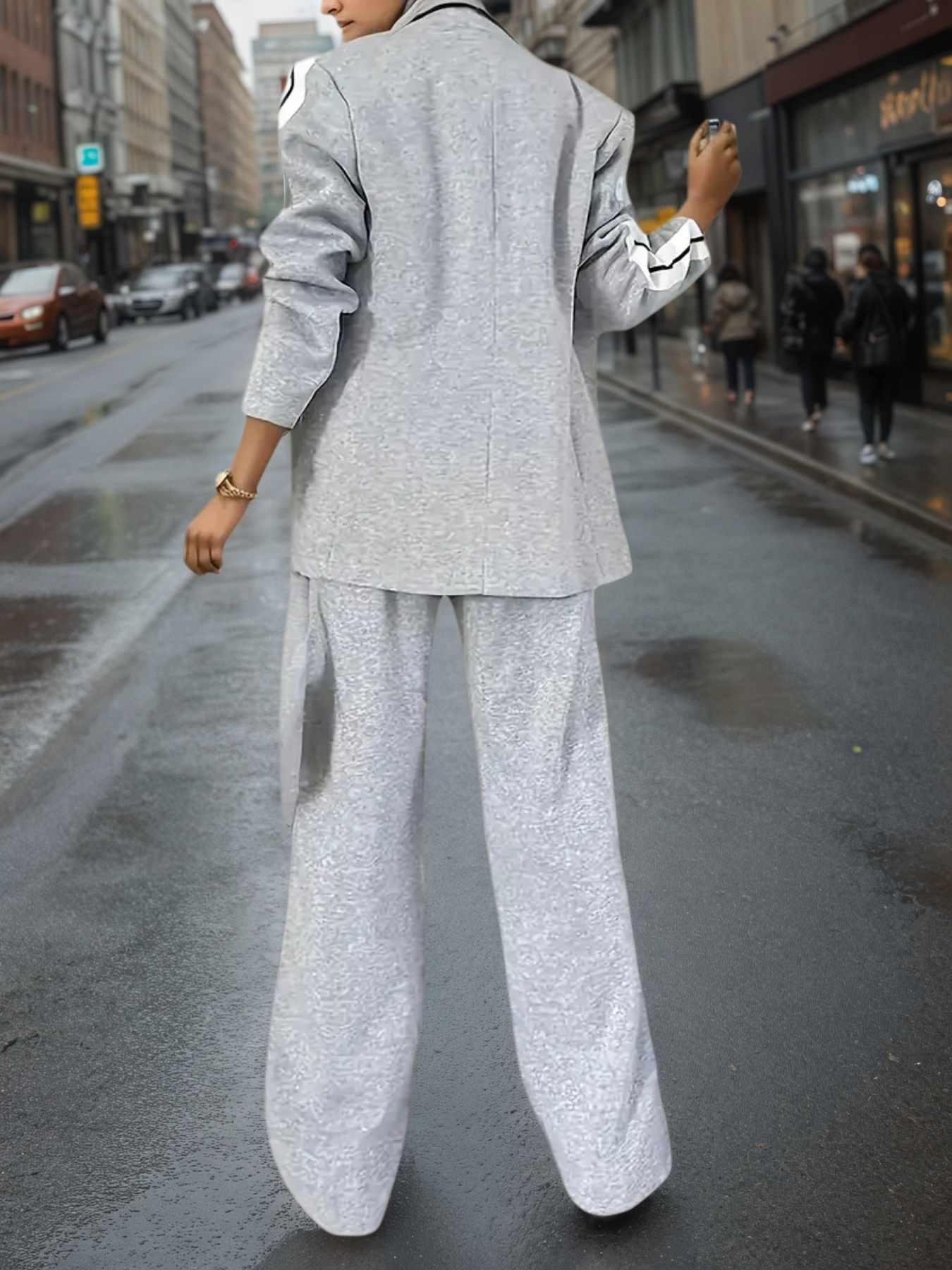 Women's New Fashionable And Elegant Women's Suit Top&pants Set - Long Sleeved Pants With Side Striped Details On The Collar, Spring And Autumn Solid Color Casual Wear, Flannel, Suit