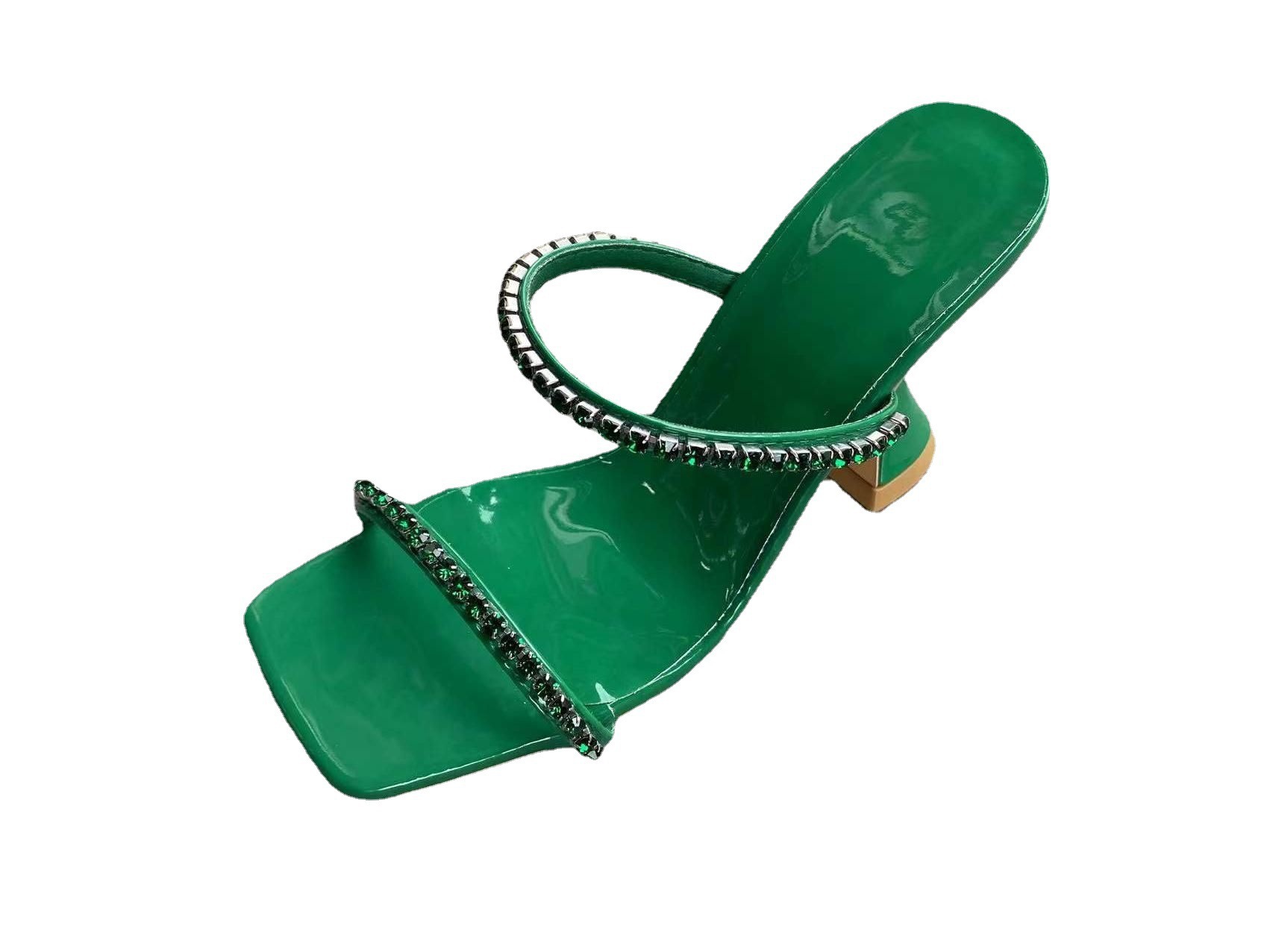 Women's New Rhinestone Square Head Stiletto High Heel Slippers
