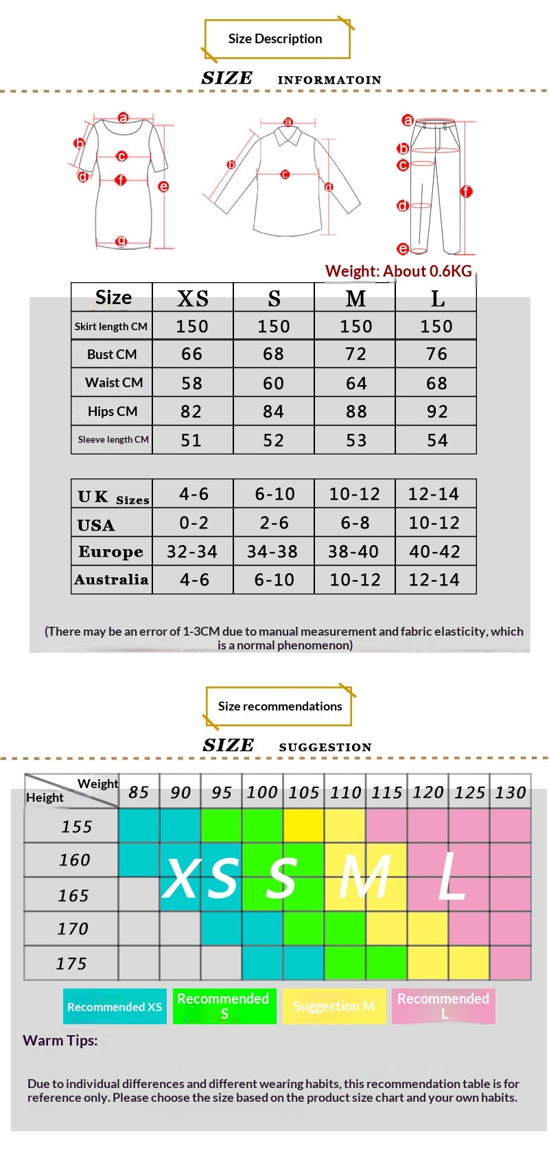 Sizes: XS, S, M, L