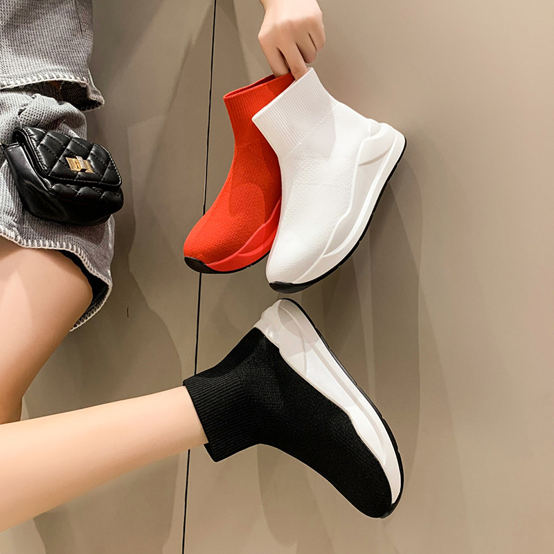 Women's New Thick Bottom Round Head Flying Socks Boots
