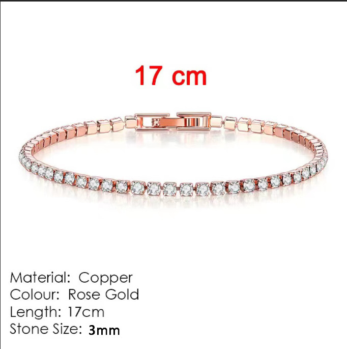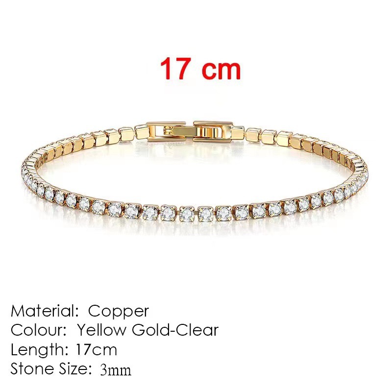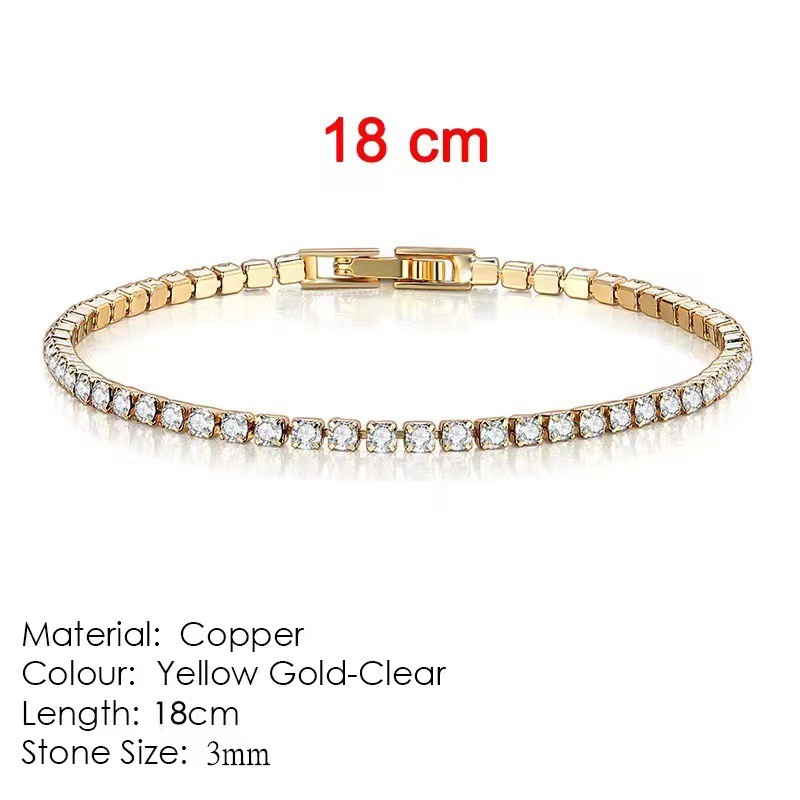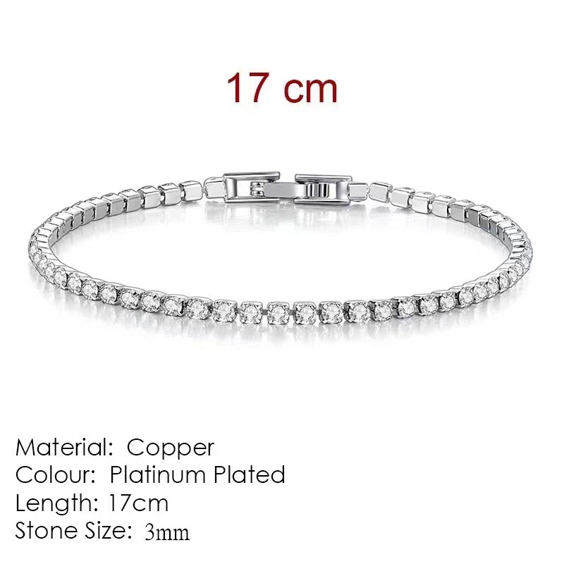 Colors: 3mm pave diamond bracelet (platinum), 16 cm in length; 3mm pave diamond bracelet (platinum), 17 cm in length; 3mm pave diamond bracelet (platinum), 18 cm in length; 3mm pave diamond bracelet (platinum), 19 cm in length; 3mm pave diamond bracelet (rose gold), 16 cm in length; 3mm pave diamond bracelet (rose gold), 17 cm in length; 3mm pave diamond bracelet (rose gold), 18 cm in length; 3mm pave diamond bracelet (rose gold), 19 cm in length; 3mm pave diamond bracelet (yellow gold), 16 cm in length; 3mm pave diamond bracelet (yellow gold), 17 cm in length; 3mm pave diamond bracelet (yellow gold), 18 cm in length; 3mm pave diamond bracelet (yellow gold), 19 cm in length.