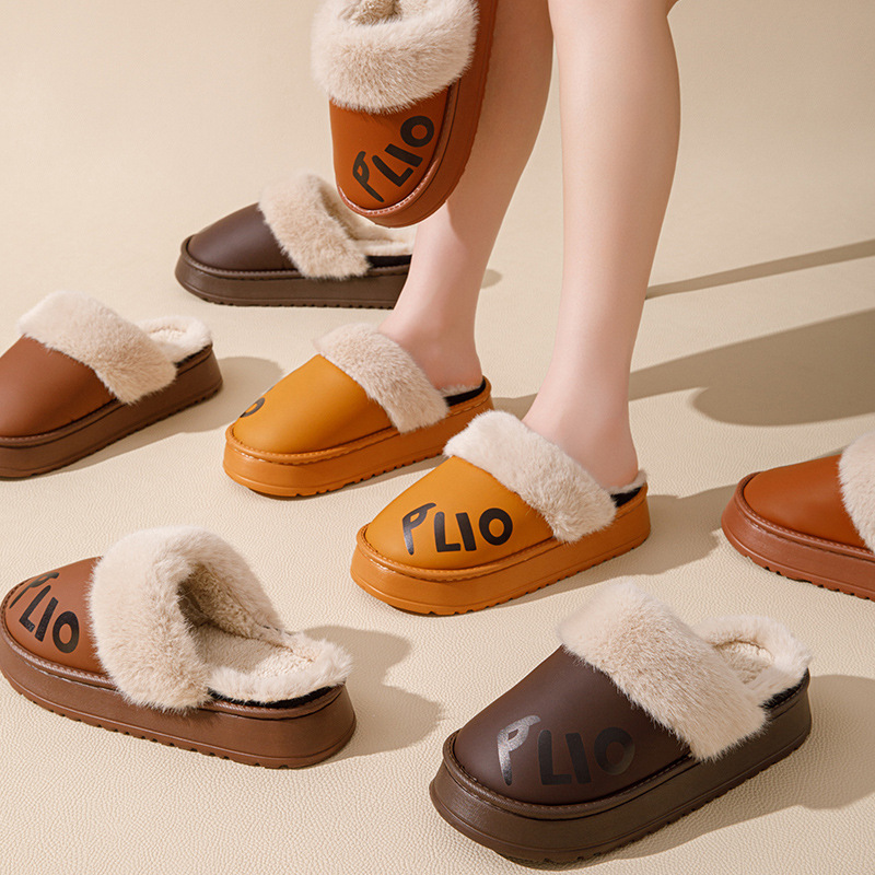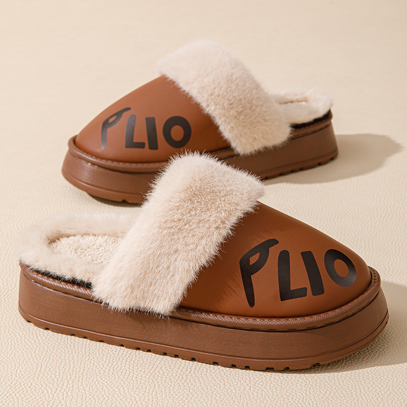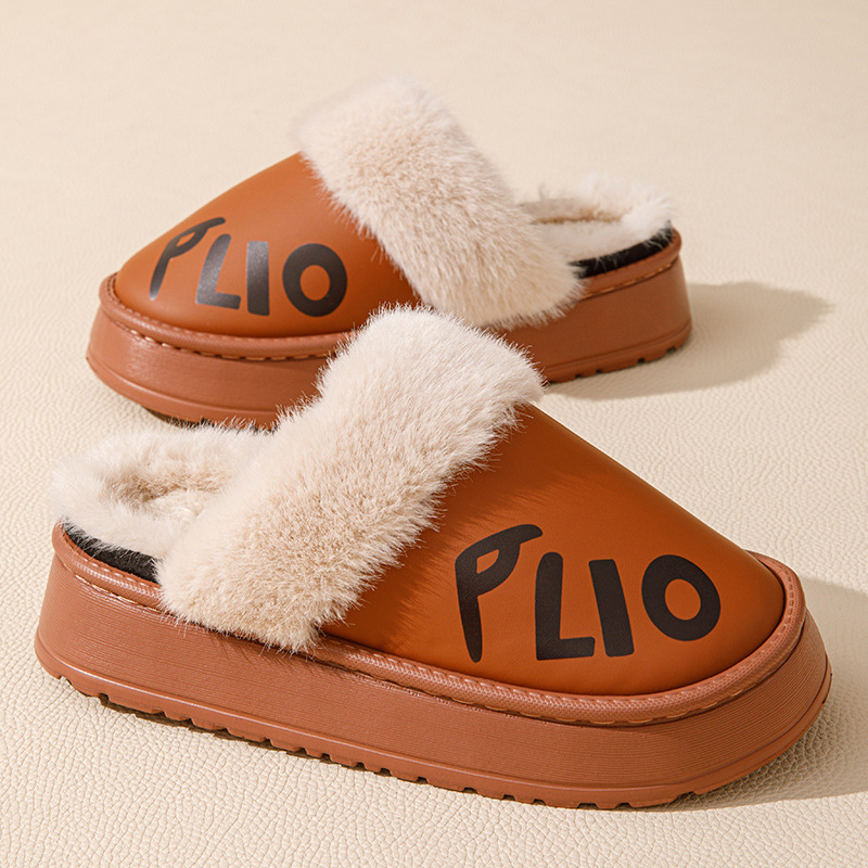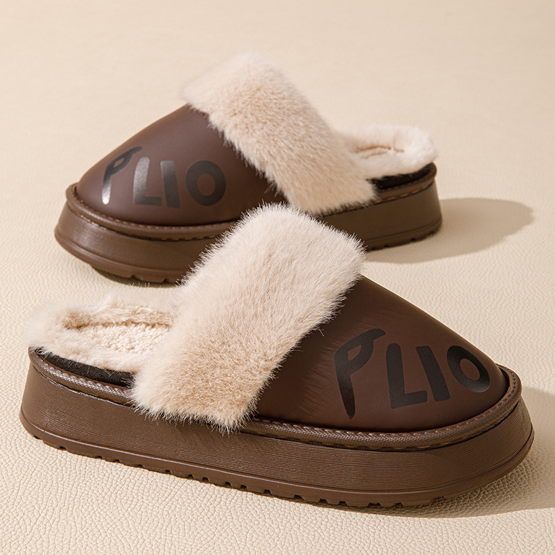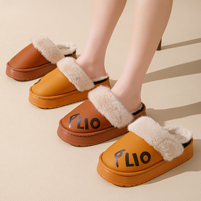 Women's Non-slip Plush Warm Slugged Bottom Home Cotton Slippers